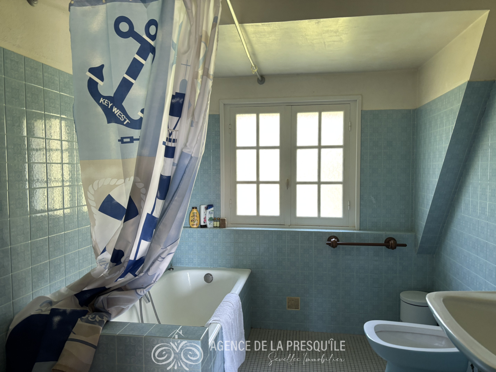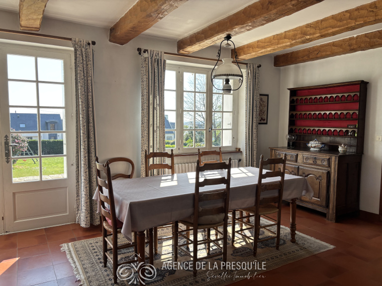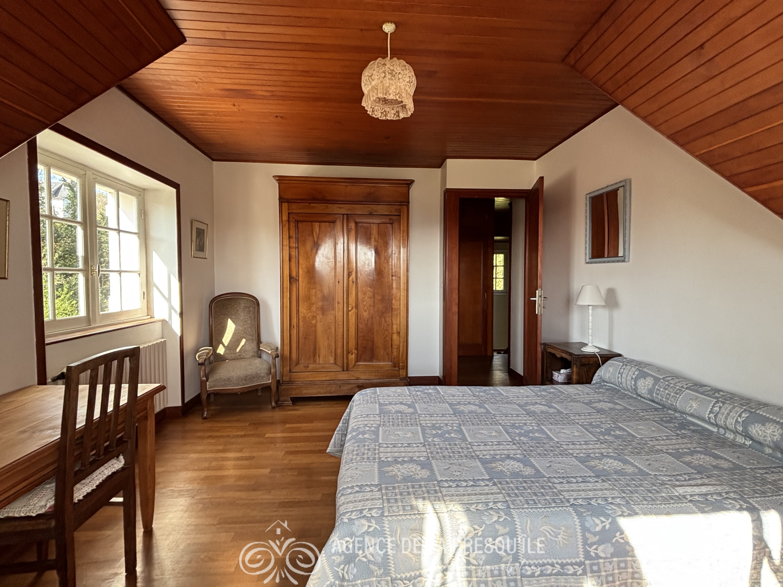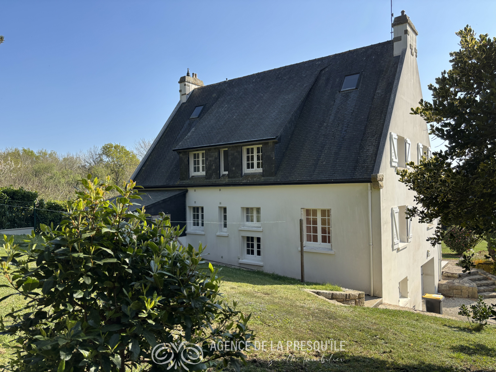 Située dans un secteur recherché, à moins d'un kilomètre du bourg de Crozon et de la plage du Portzic, cette spacieuse propriété exposée sud profite d'un environnement calme et verdoyant. Elle comprend au rez-de-chaussée: entrée, salon-sejour avec cheminée donnant sur terrasse exposée sud avec bureau attenant, cuisine aménagée avec coin repas, chambre, salle d'eau et WC ; et à l'étage : dégagement, cinq chambres, salle de bains et WC. Combles aménageables. Sous-sol complet avec espace chaufferie et buanderie, WC. Appentis attenant. Le tout sur un terrain de 2491 m². Etat des risques disponible à l'agence.