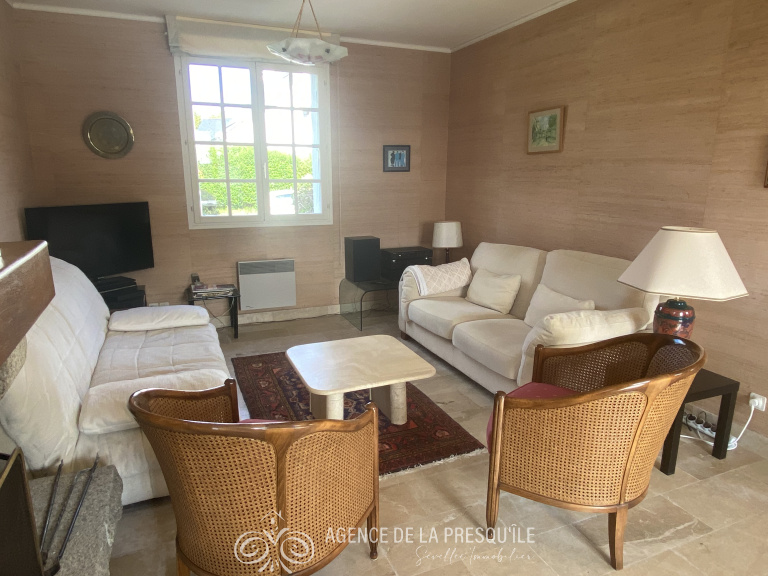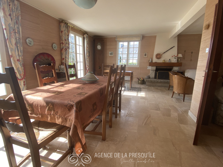 VENDU PAR NOS SOINS - Cette élégante maison néo-bretonne, bien entretenue et lumineuse est située dans un environnement calme et verdoyant, à proximité immédiate des sentiers de randonnées, à 1,2 kilomètre du bourg de Crozon et de la plage du Portzic. Edifiée au début des années 70, cette charmante maison propose un agencement agréable ainsi qu'un jardin aménagé de plus de 800 m². Elle comprend au rez-de-chaussée : entrée, spacieuse pièce de vie avec cheminée donnant sur terrasse, cuisine séparée aménagée donnant également sur terrasse, salle d'eau et WC ; et à l'étage : dégagement, trois chambres avec perspective sur la baie de Douarnenez, lingerie, grande salle de bains, WC, combles au-dessus. Garage attenant avec grenier à l'étage.