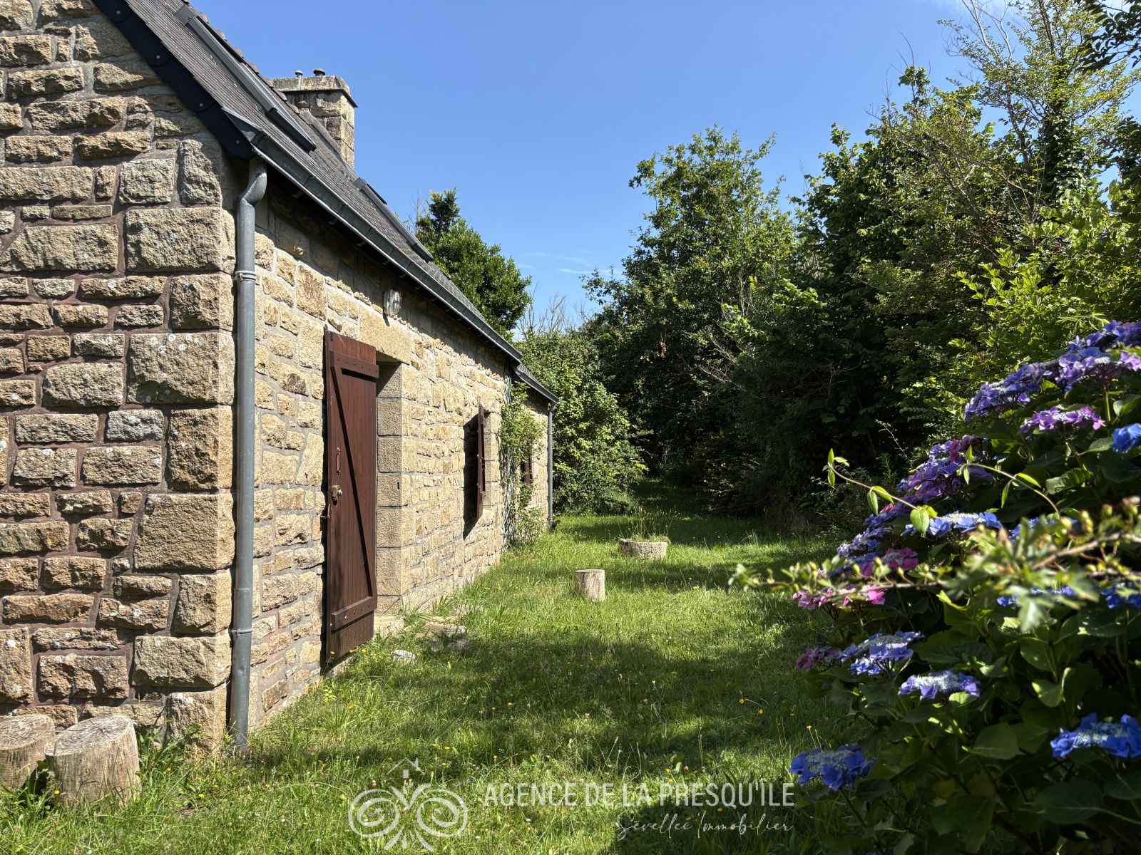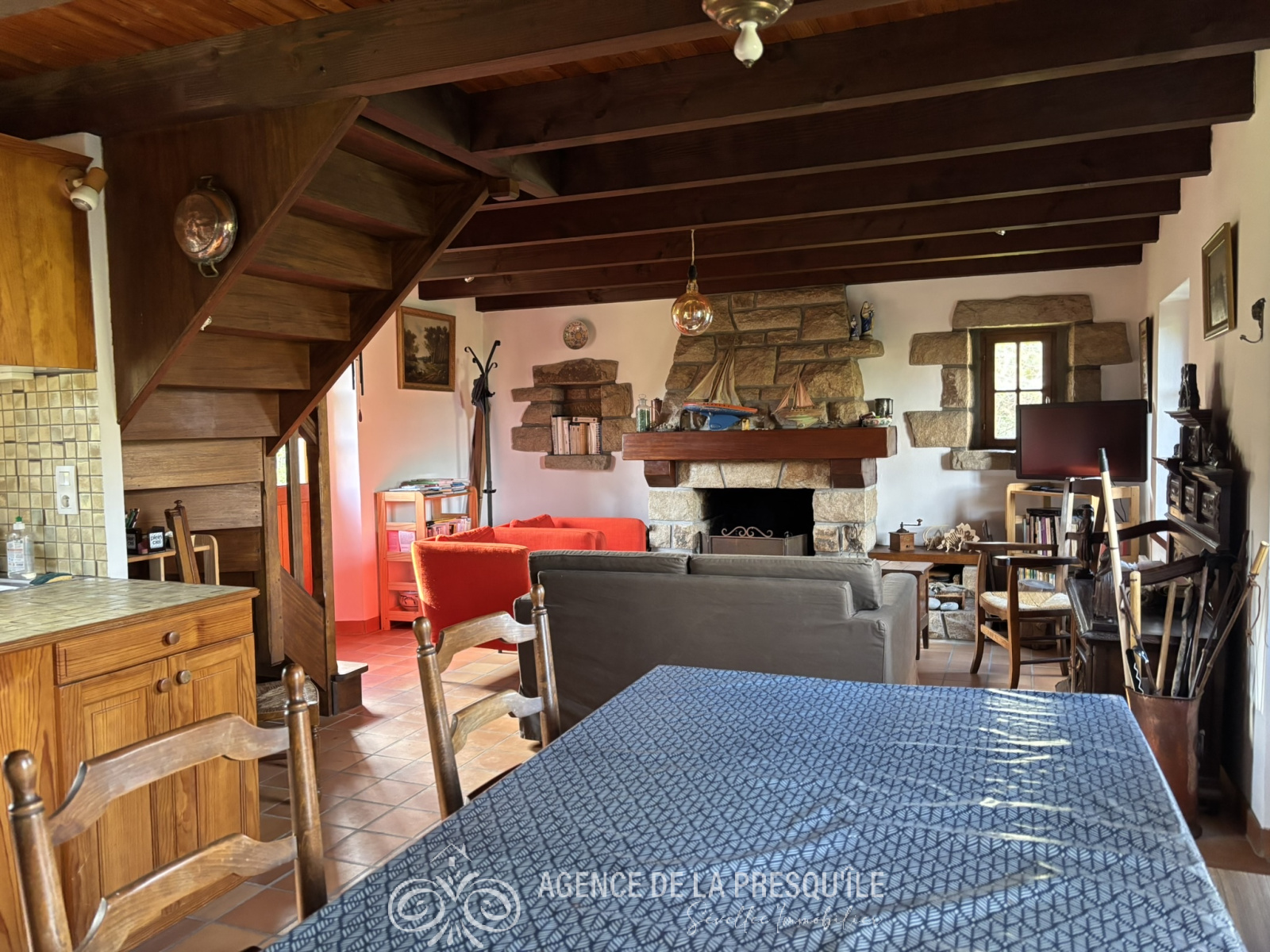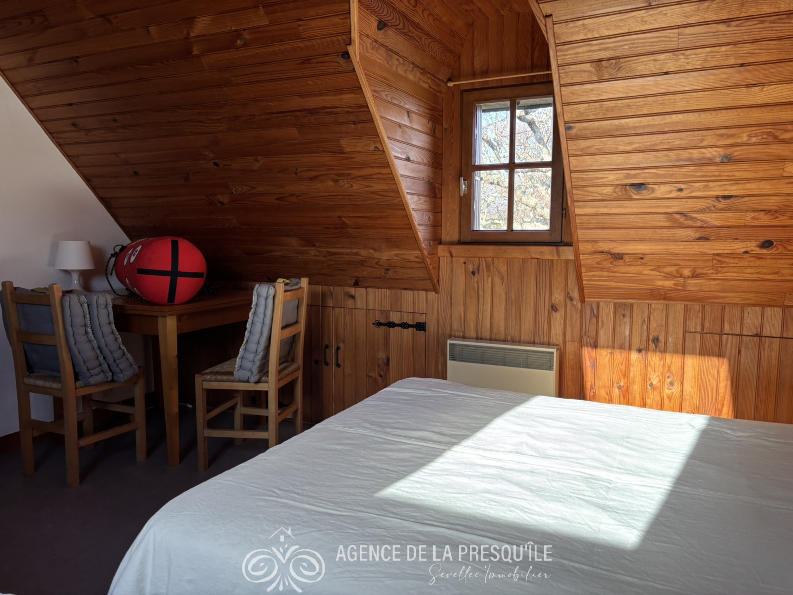 SOUS COMPROMIS - située au calme, à proximité de la mer et des sentiers, cette maison de caractère profite d'un beau parc arboré. Elle comprend au rez-de-chaussée : pièce de vie avec cheminée, cuisine ouverte, chambre, salle d'eau, WC, cellier avec coin buanderie ; et à l'étage : dégagement, deux chambres mansardées, une pièce et cabinet de toilettes. Grand jardin de plus de 5000 m² avec abris. Etat des risques disponible à l'agence.