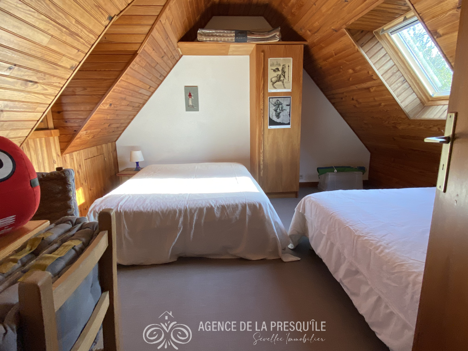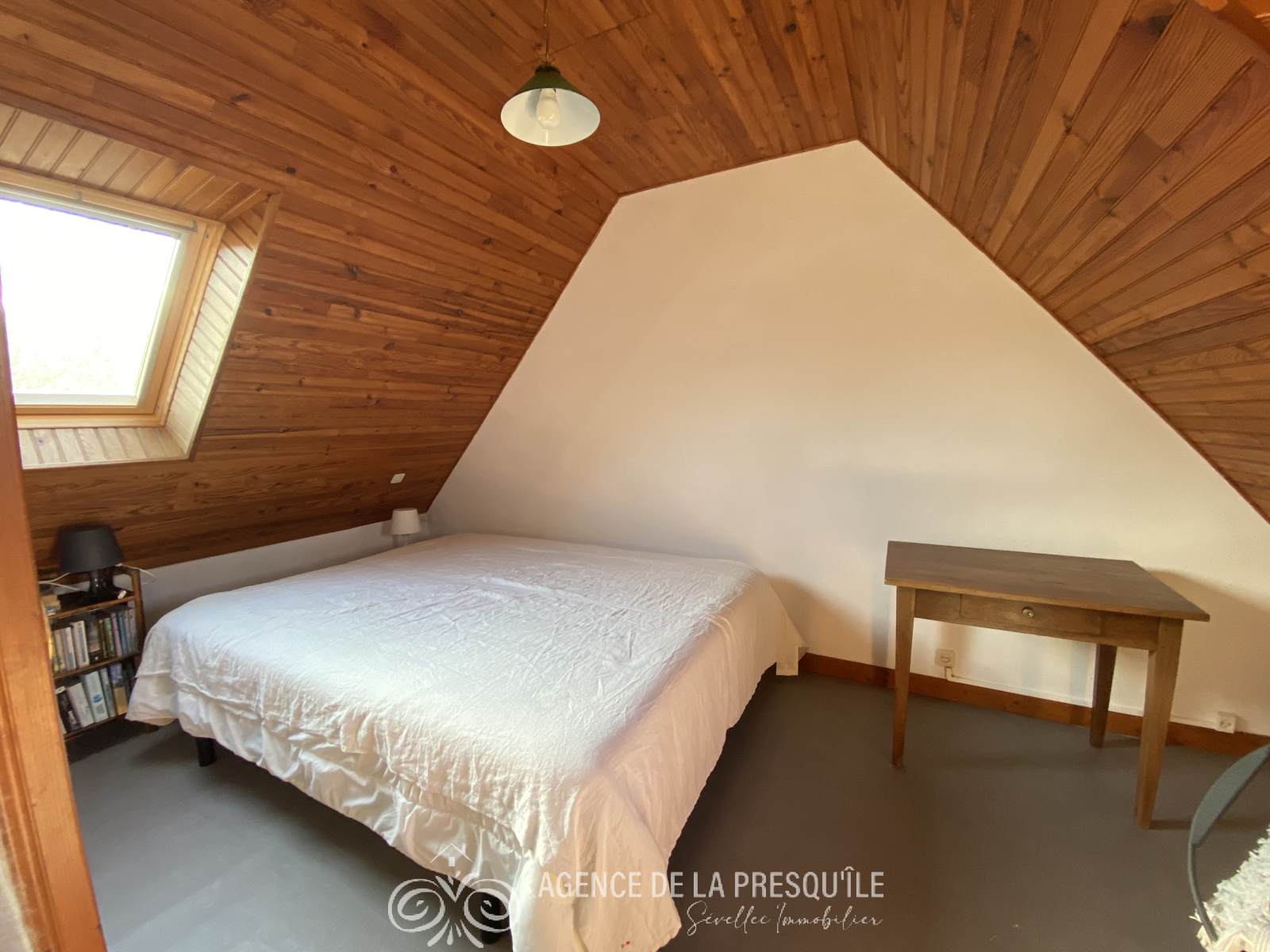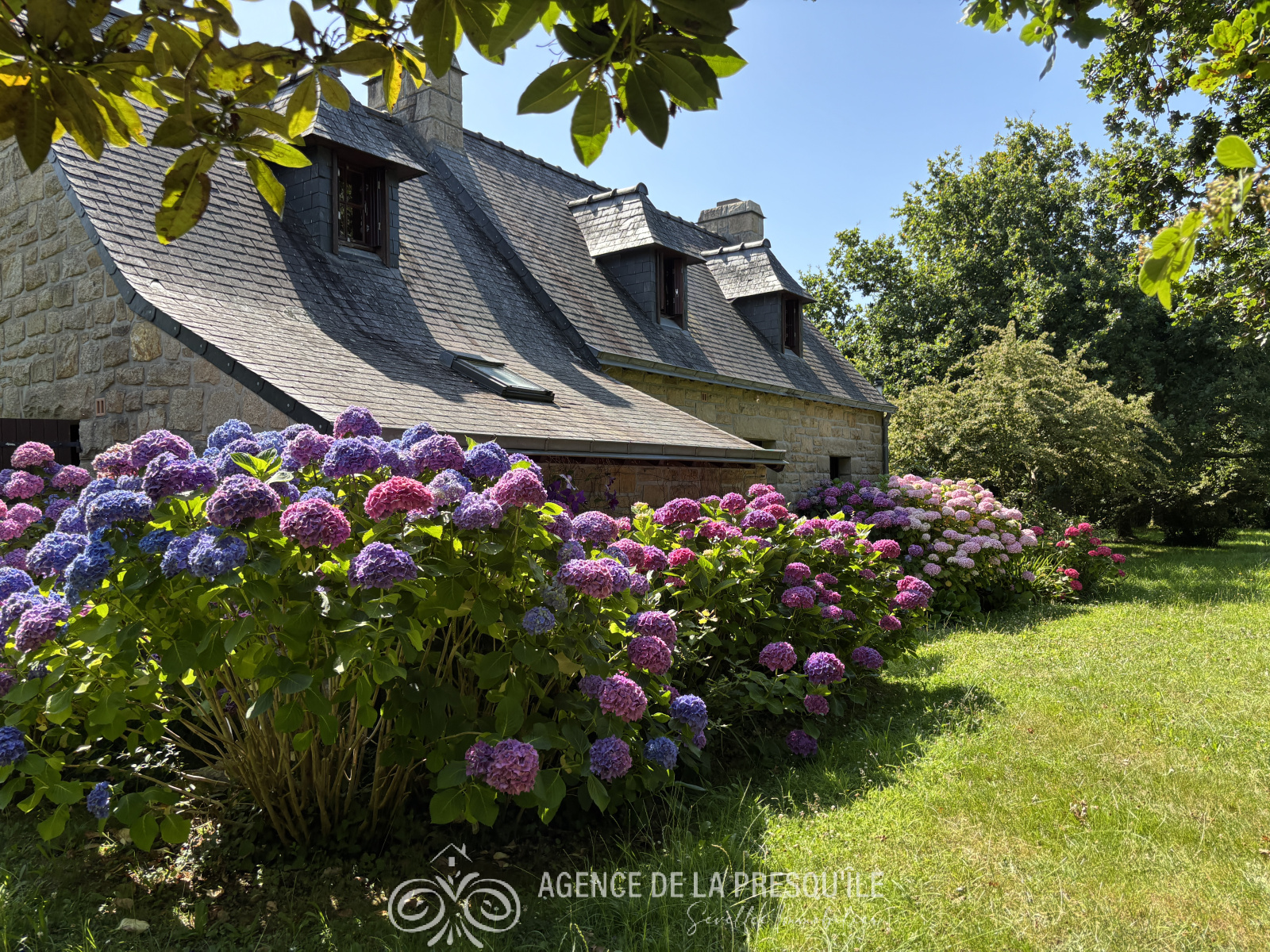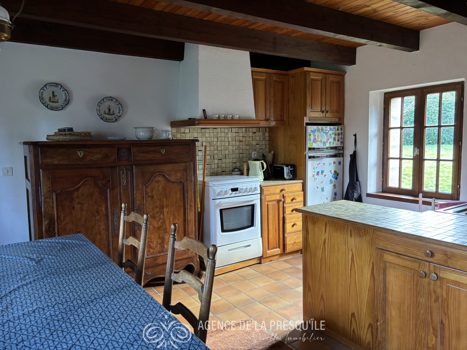 SOUS COMPROMIS - située au calme, à proximité de la mer et des sentiers, cette maison de caractère profite d'un beau parc arboré. Elle comprend au rez-de-chaussée : pièce de vie avec cheminée, cuisine ouverte, chambre, salle d'eau, WC, cellier avec coin buanderie ; et à l'étage : dégagement, deux chambres mansardées, une pièce et cabinet de toilettes. Grand jardin de plus de 5000 m² avec abris. Etat des risques disponible à l'agence.