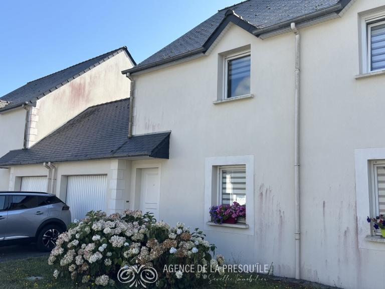 Cette maison entretenue avec soins située à 500 mètres bourg de Crozon profite d'un agréable envionnement verdoyant et calme et d'une expostion ouest. Elle comprend au rez-de-chaussée : entrée avec WC, séjour donnant sur terrasse et jardinet, cuisine aménagée ouverte ; et à l'étage : dégagement, deux chambres. Garage attenant. Copropriété composée de 120 lots dont 68 habitations.. Montant annuel des charges : 1130 euros. Etat des risques disponible à l'agence.