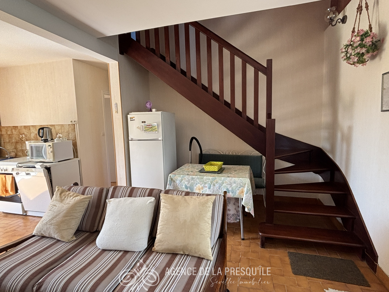 Située au calme dans un quartier recherché à 600 mètres de la plage et du port de Morgat, cette maison des années 1980 est composée, au rez-de-chaussée : d'une grande pièce de vie avec cuisine ouverte donnant sur terrasse, d'une buanderie, d'une chambre , d'une salle de bains et d'un WC. L'étage se compose de deux chambres et d'un cabinet de toilette WC. Jardin avec abri joliment aménagé. Etat des risques disponible à l'agence.