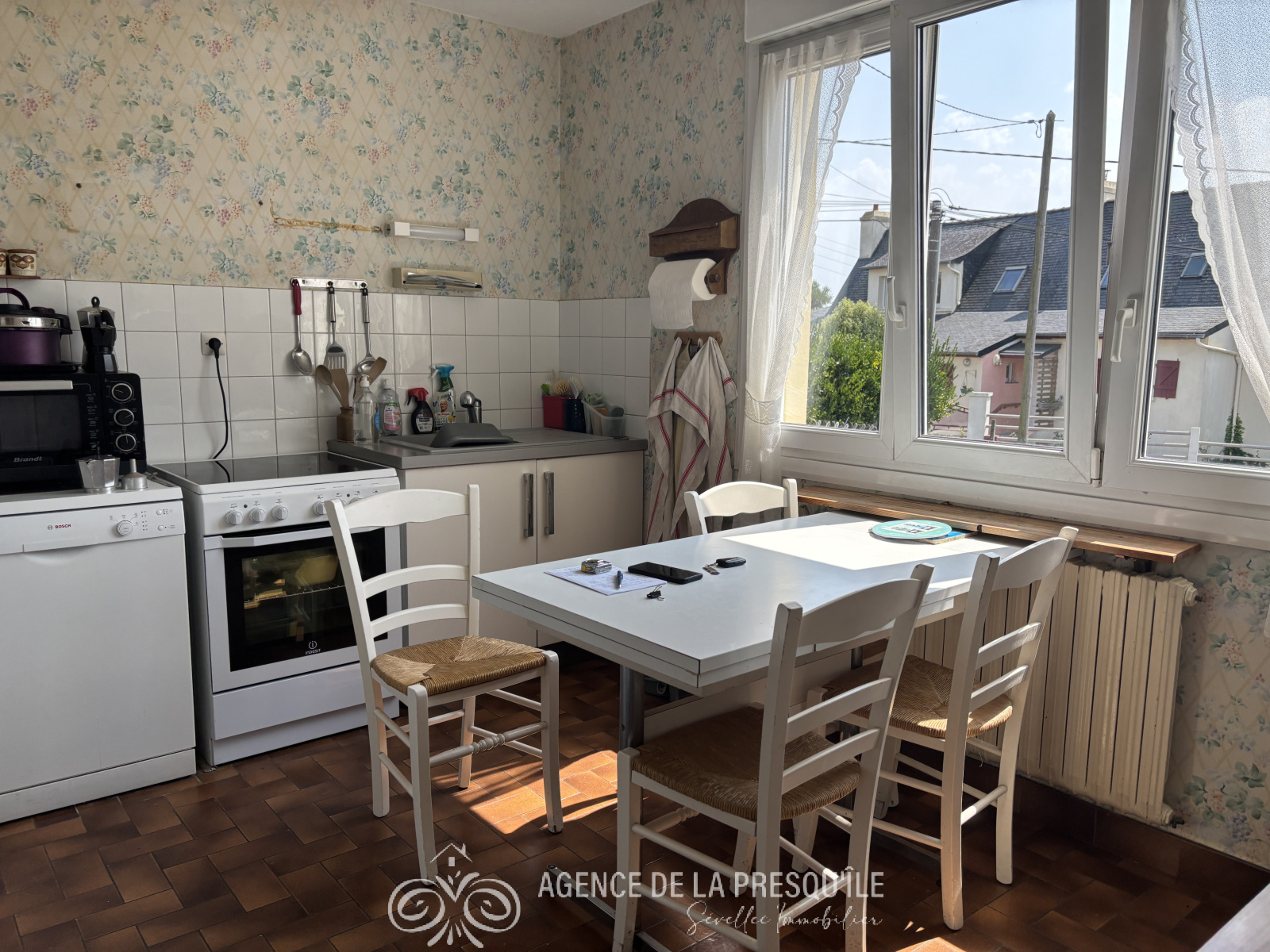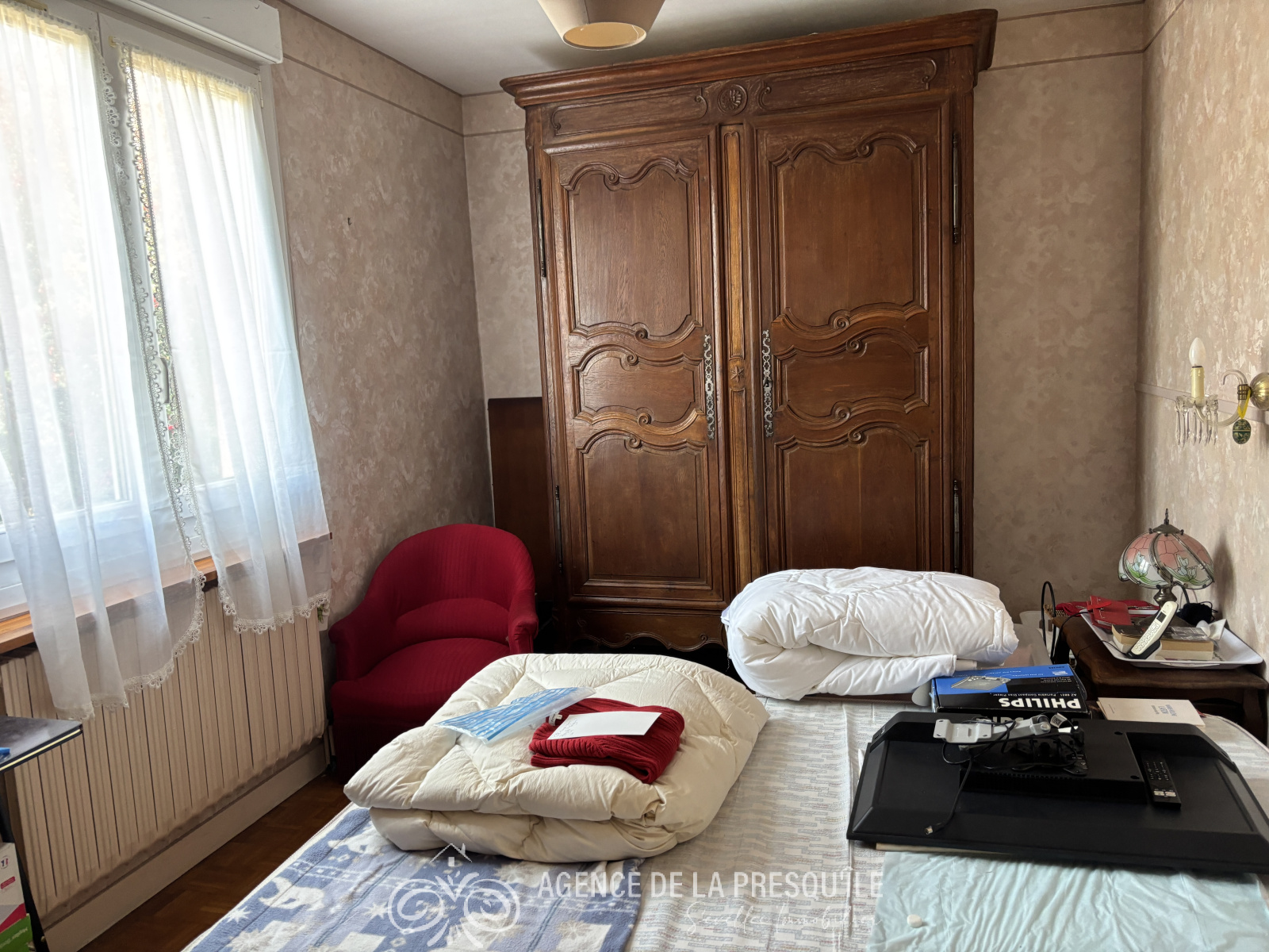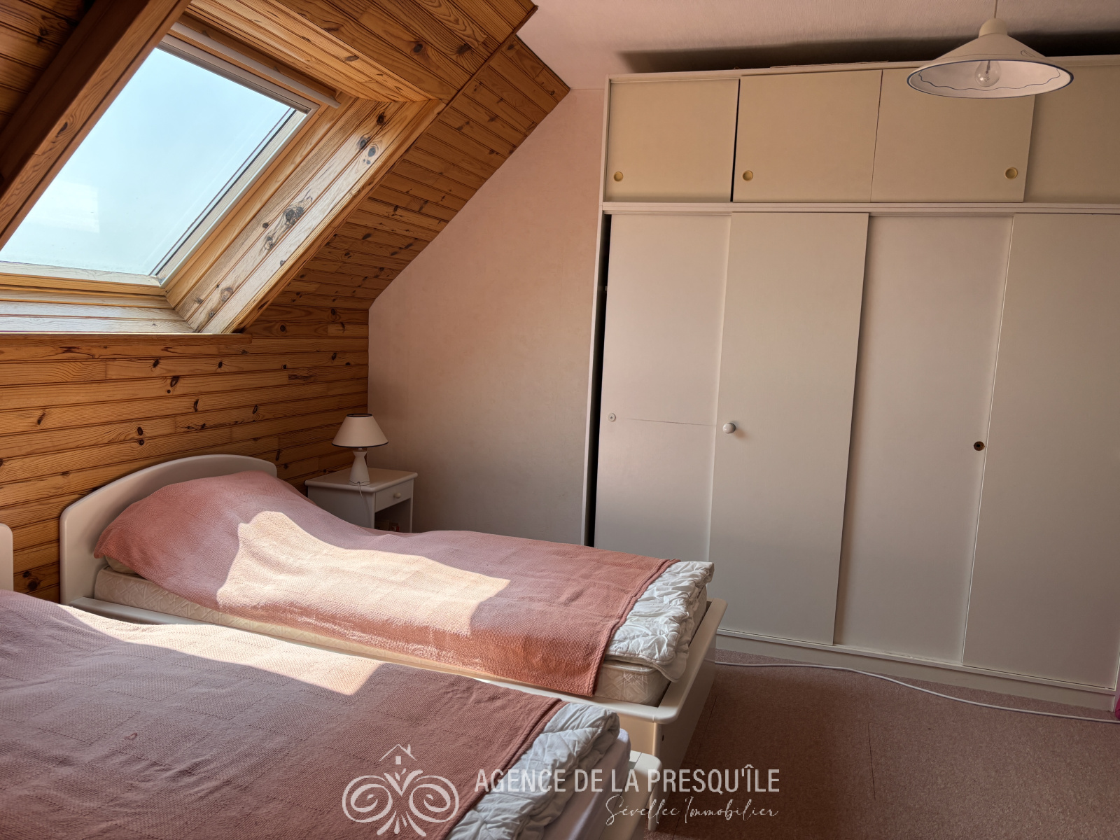 Cette maison néo-breonne située au calme et à moins d'un kimomètre du bourg de Crozon profite d'une agréable perspective sur le port de Morgat. Elle comprend au rez-de-chaussée : véranda d'entrée, dégagement, cuisine aménagée, pièce de vie avec cheminée donnant sur jardin, chambre, salle de bains et WC ; et à l'étage chambre donnant en enfilade sur une seconde chambre, grenier. Garage. Jardin. Plage du Portzic à 1,6 km. Etat des risques disponible à l'agence.
