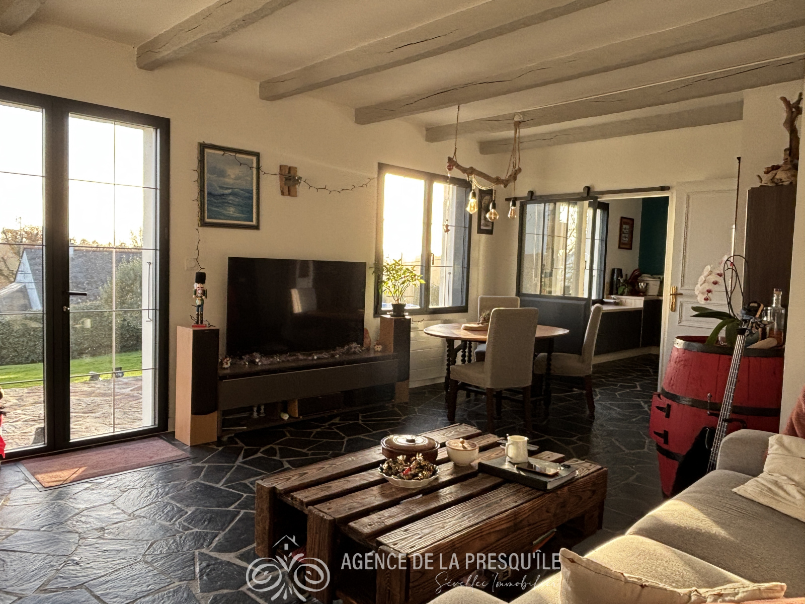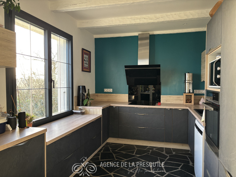 Située dans un environnement calme et recherché, sur le versant sud de Crozon, entre bourg et plage, venez découvrir cette belle maison néo-bretonne rénovée avec goût proposant des prestations de qualité. Au rez-de-chaussée, une entrée mène à un séjour agréable et chaleureux donnant sur une belle terrasse offrant un panorama sur le port de Morgat. Vous y trouverez également une cuisine aménagée et équipée ainsi qu'une pièce, une salle d'eau et des WC. L'étage comprend deux chambres dont une avec dressing, un bureau, une salle d'eau avec WC. Un garage d'environ 56 m2 avec une pièce aménagée au-dessus complètent cet ensemble. Cave. Le tout sur un terrain aménagé d'environ 1500 m2. État des risques disponibles à l'agence.