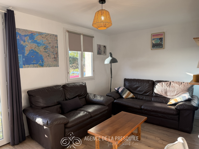 Découvrez cette maison récente située dans un cadre exceptionnel et calme. Profitant d'une vue sur la baie de Douarnenez depuis le jardin et située à seulement 200 mètres du sentier côtier et 500 mètres de la plage cette charmante maison de plain pied comprend : pièce de vie avec cuisine ouverte, chambre, pièce pouvant servir de bureau, salle d'eau avec WC. Jardin aménagé avec terrasse en bois. Maison dispensée de DPE superficie habitable inférieure à 50 m². Etat des risques disponible à l'agence.