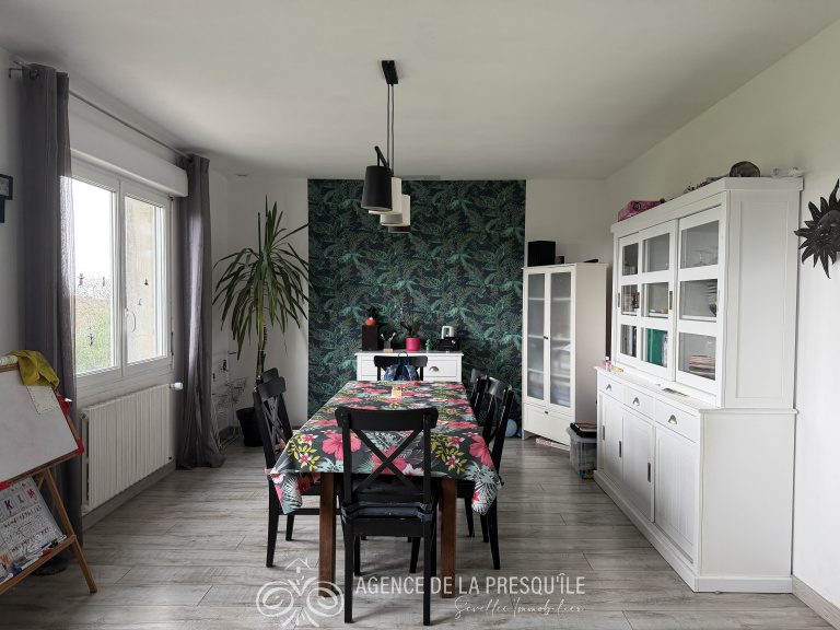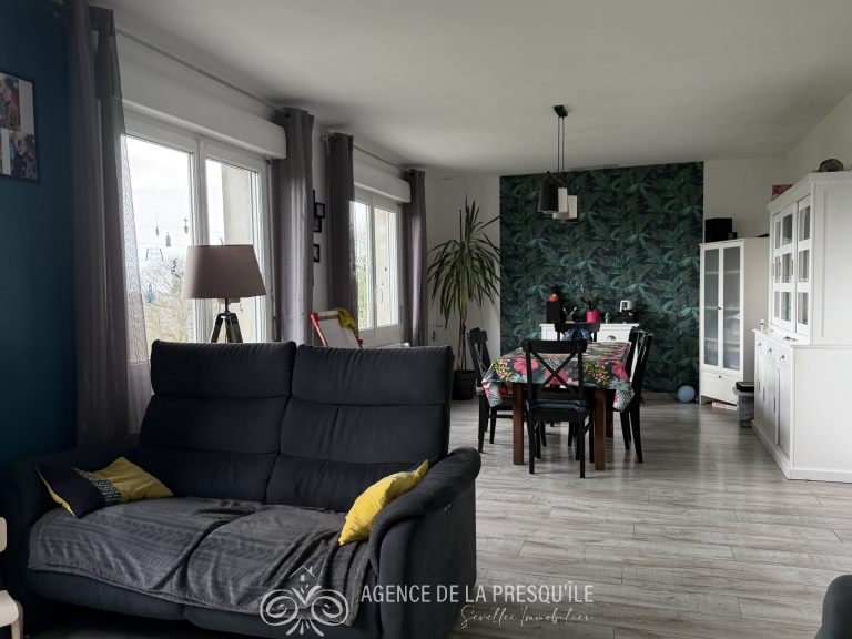 Cette maison rénovée avec goût profite d'une agréable vue dominante sur une campagne préservée et d'un grand terrain de plus de 7 000 m² offrant un cadre sans vis-à-vis. Perspective sur la mer de la cuisine et d'une chambre à l'étage. Située à proximité des services, découvrez cette maison lumineuse et fonctionnelle comprenant au rez-de-chaussée : entrée, cuisine, salle de séjour exposée sud donnant sur une terrasse, bureau, WC ; et à l'étage : 3 chambres, salle de bains avec WC. Sous-sol complet offrant une belle capacité de stockage avec une partie garage d'environ 35 m2 et une partie chaufferie d'environ 15.5 m2 ainsi qu'un atelier de 7 m². En complément au niveau des extérieurs se trouve un hangar d'environ 70 m² a rénover. État des risques disponible à l'agence.