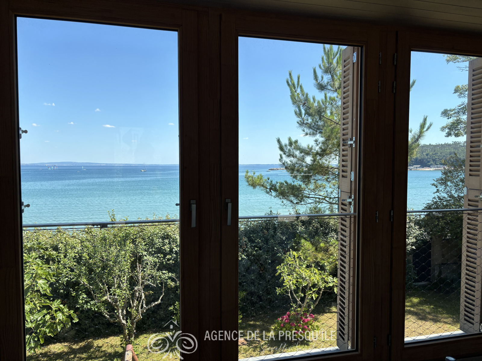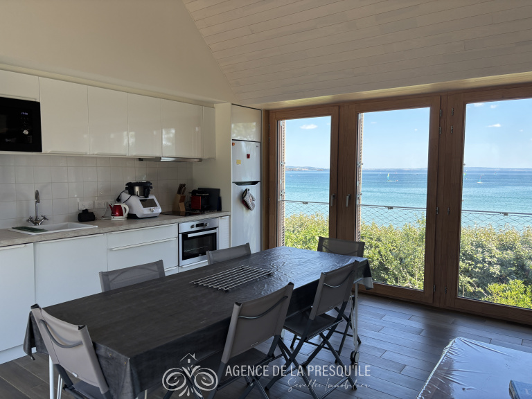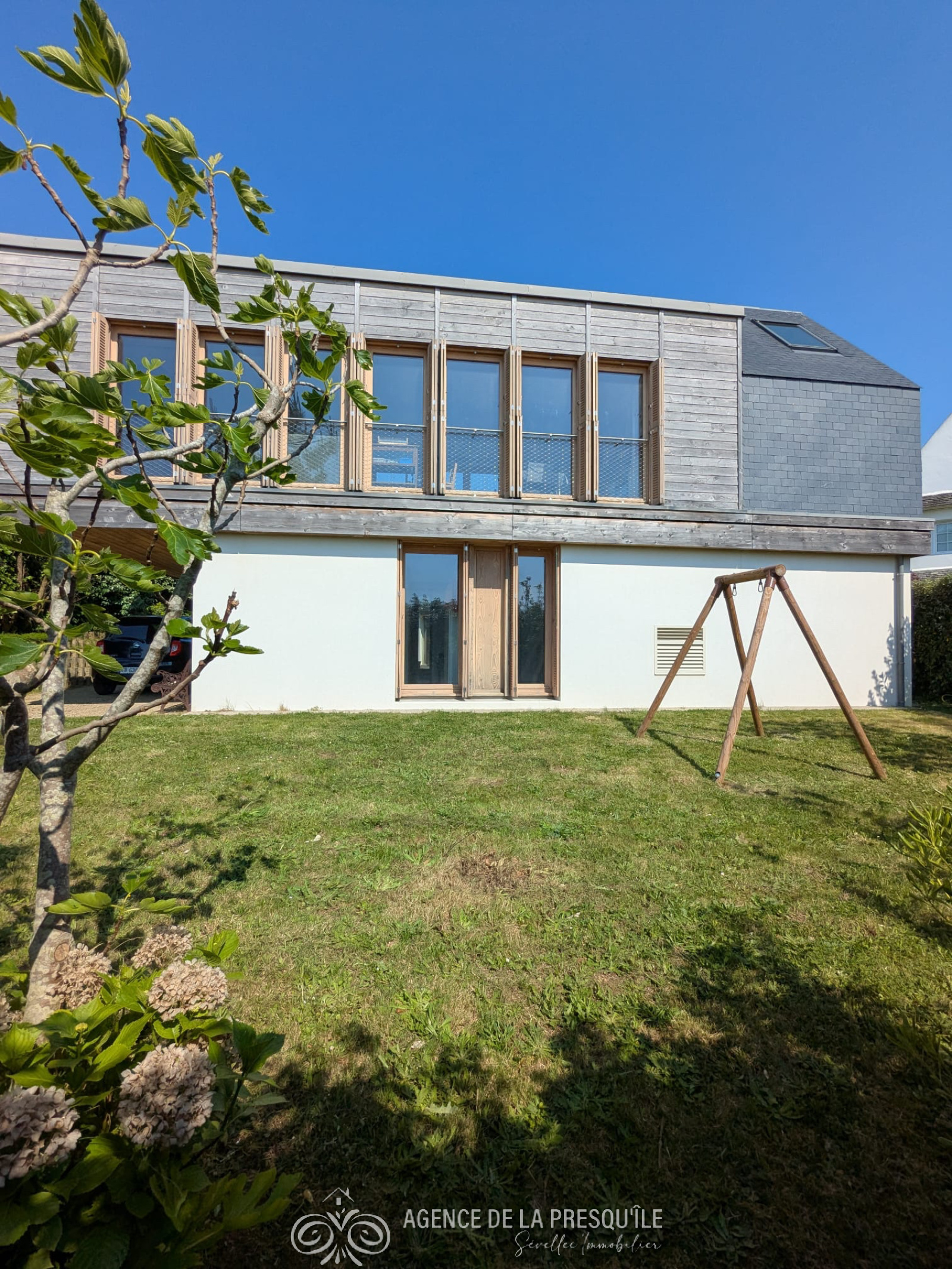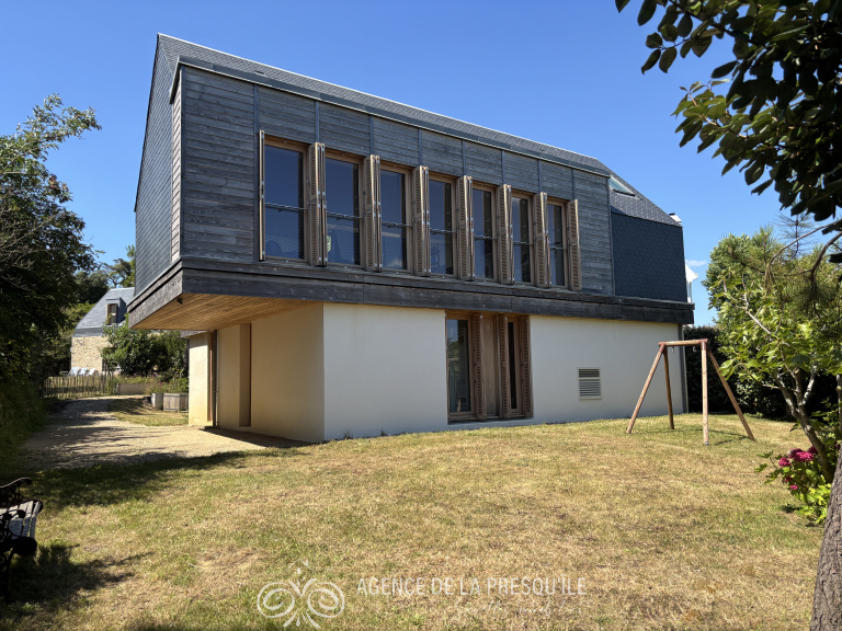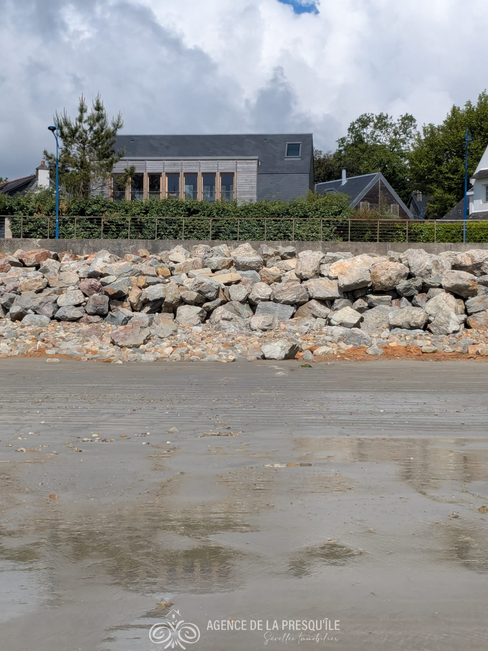 Cette villa contemporaine située face à la plage de Morgat dans le quartier Peugeot, profite d’une vue panoramique sur la baie de Douarnenez. Découvrez ses lignes raffinées et son agréable agencement étudiés par l’architecte Michel Grignou permettant d’allier esthétisme et confort. Sa pièce de vie avec cuisine aménagée, située à l’étage et accessible par ascenseur ou escalier, permet de contempler la baie de Douarnenez tout en pouvant profiter d’une terrasse exposée Ouest. Le rez-de-chaussée comprend : une entrée, deux chambres avec salles d’eau attenantes, une troisième chambre, buanderie et WC. Agréable dépendance non attenante de 19,20 m². Le tout sur un terrain de 700 m² environ. État des risques disponible à l’agence.
