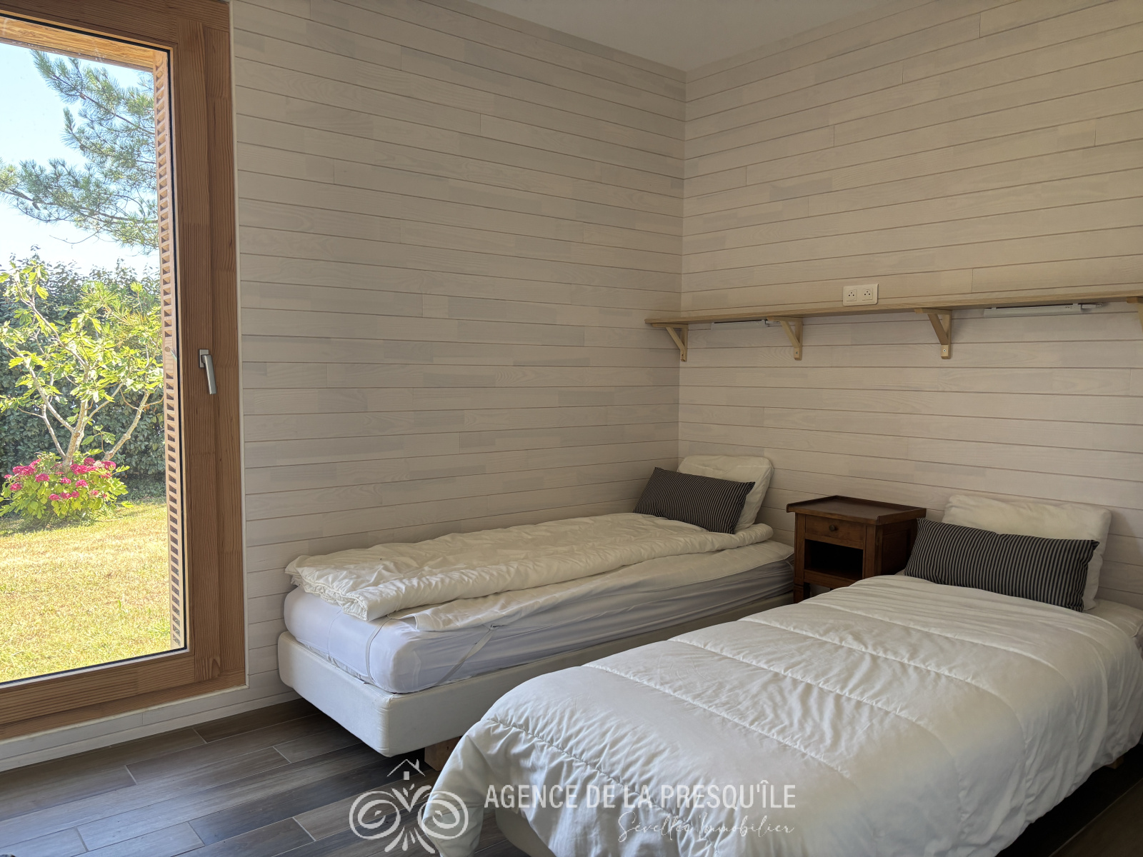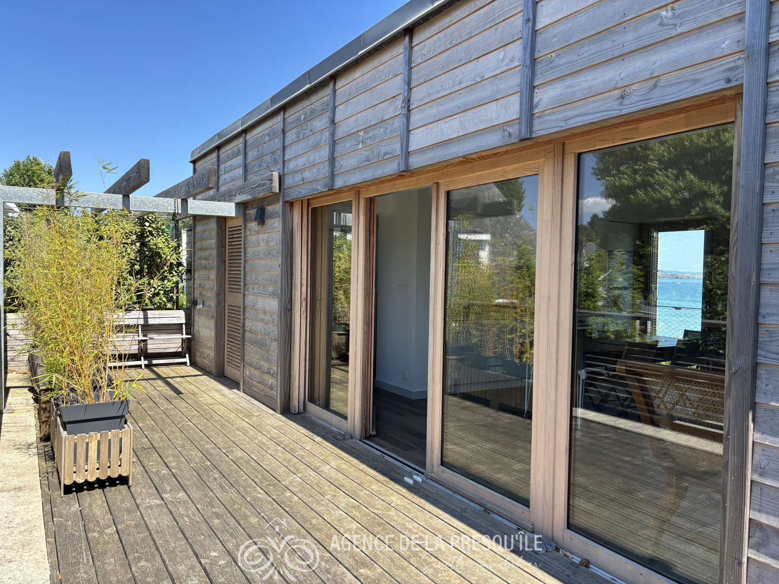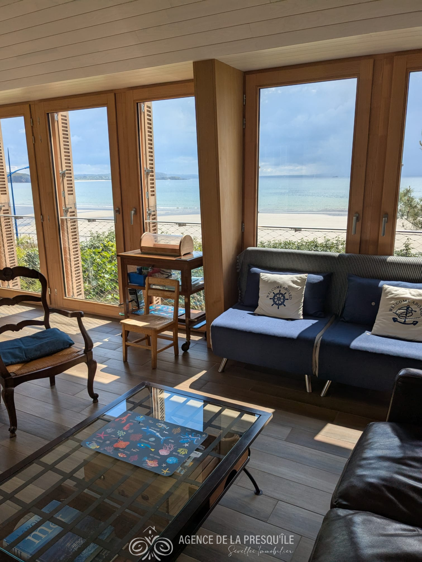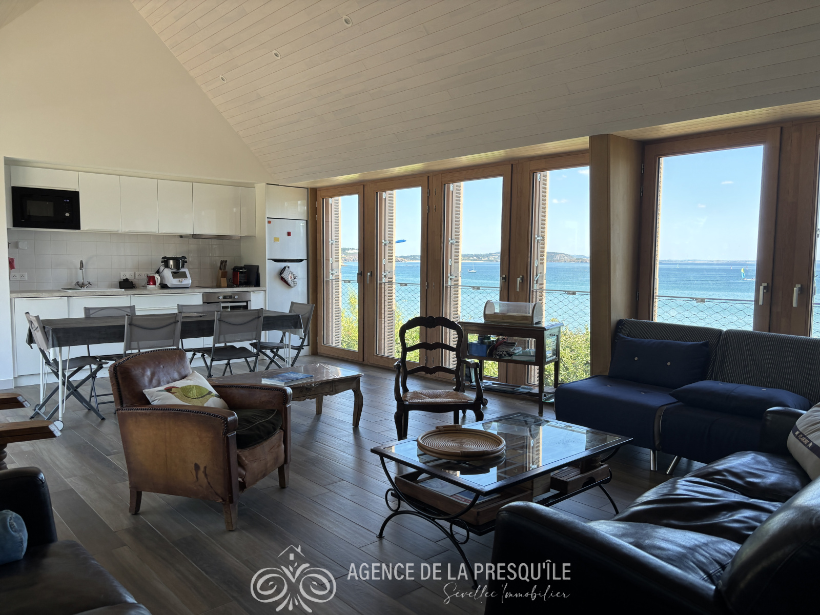 Cette villa contemporaine située face à la plage de Morgat dans le quartier Peugeot, profite d’une vue panoramique sur la baie de Douarnenez. Découvrez ses lignes raffinées et son agréable agencement étudiés par l’architecte Michel Grignou permettant d’allier esthétisme et confort. Sa pièce de vie avec cuisine aménagée, située à l’étage et accessible par ascenseur ou escalier, permet de contempler la baie de Douarnenez tout en pouvant profiter d’une terrasse exposée Ouest. Le rez-de-chaussée comprend : une entrée, deux chambres avec salles d’eau attenantes, une troisième chambre, buanderie et WC. Agréable dépendance non attenante de 19,20 m². Le tout sur un terrain de 700 m² environ. État des risques disponible à l’agence.