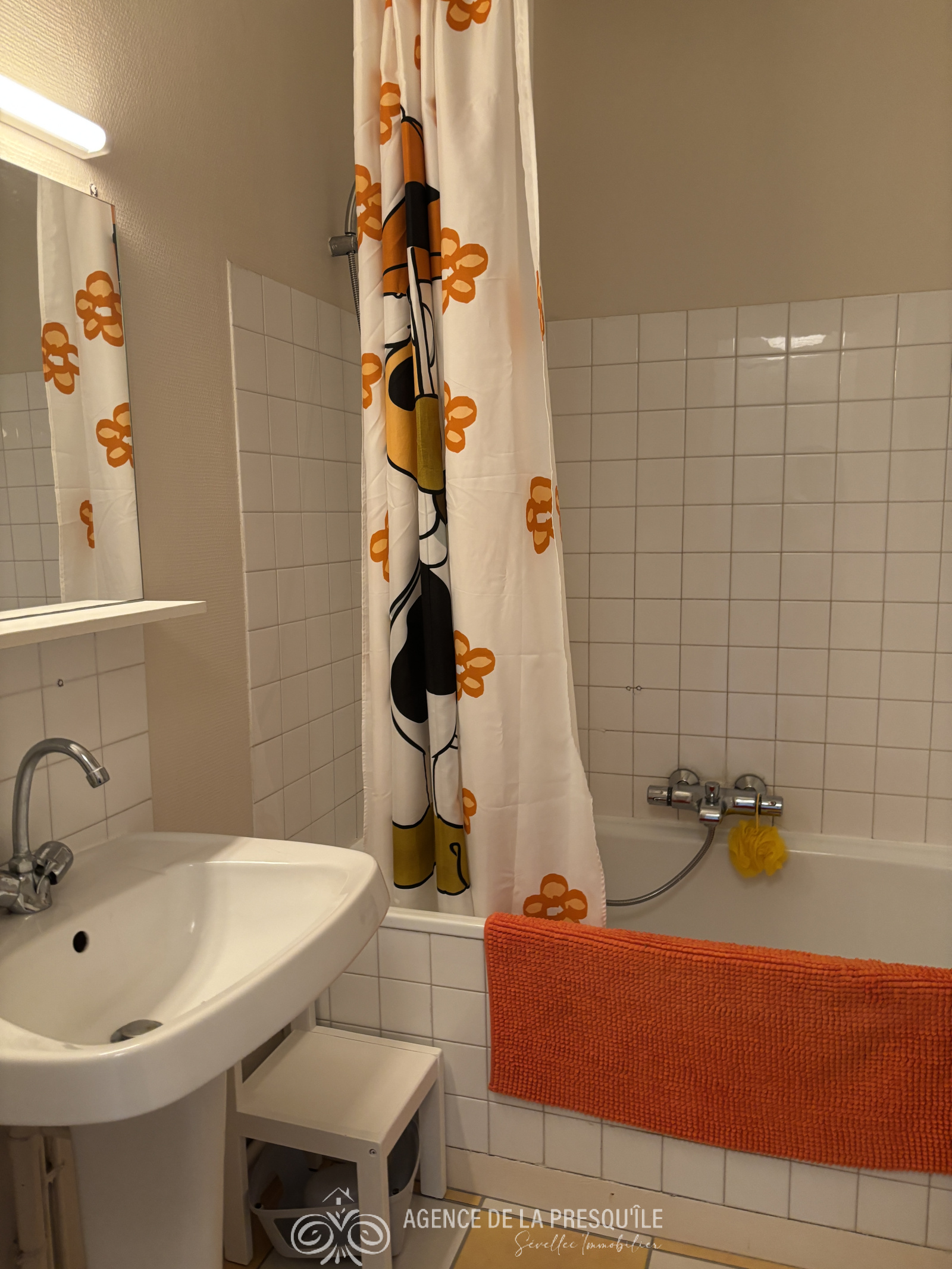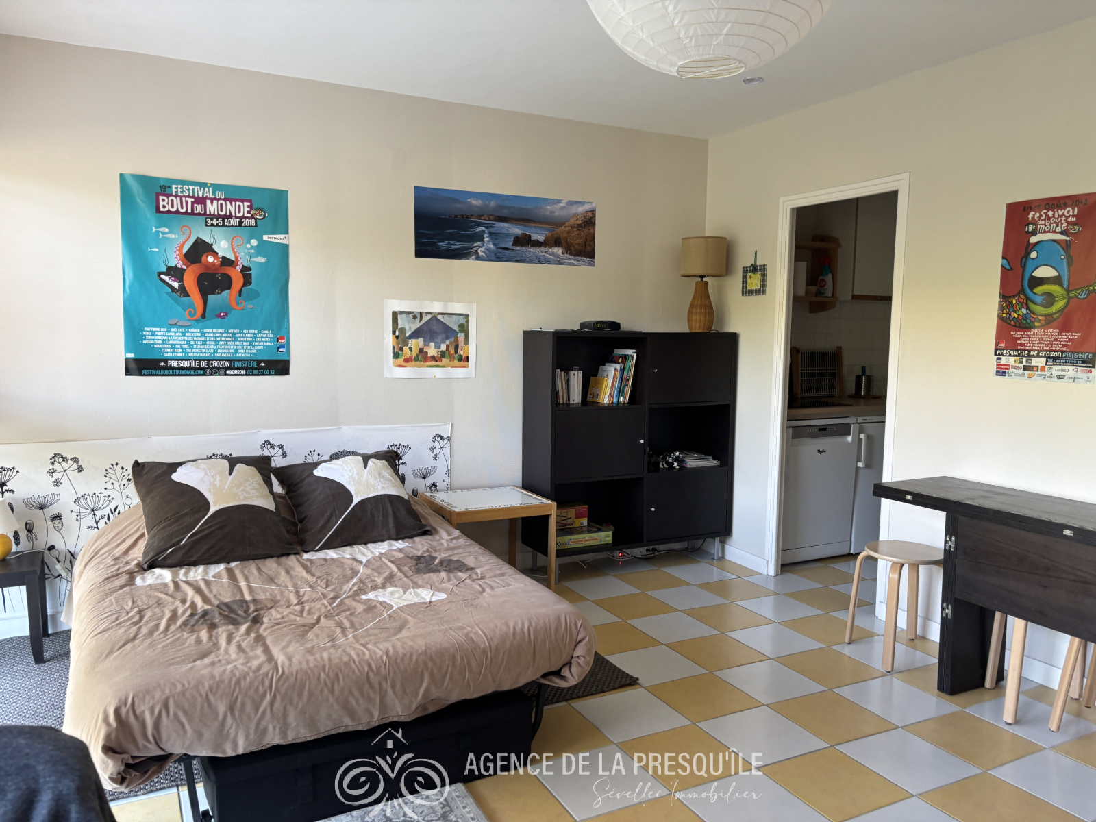 Ce studio situé dans une copropriété édifiée face à la plage de Morgat allie calme et accès facile à la mer. Proche des commerces cet appartement est composé d'une entrée avec placard, d'une pièce de vie, d'un coin cuisine et d'une salle de bains. Place de parking extérieur. Dans une copropriété comprenant 69 lots, avec une quote-part annuelle de charges de 440 € environ. Etat des risques disponible à l'agence.