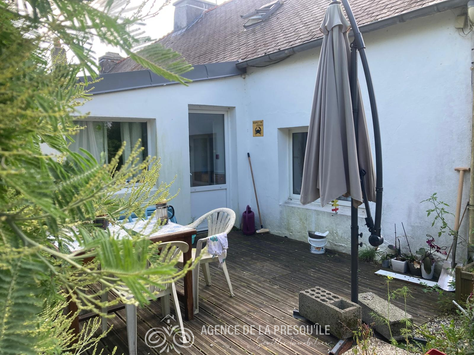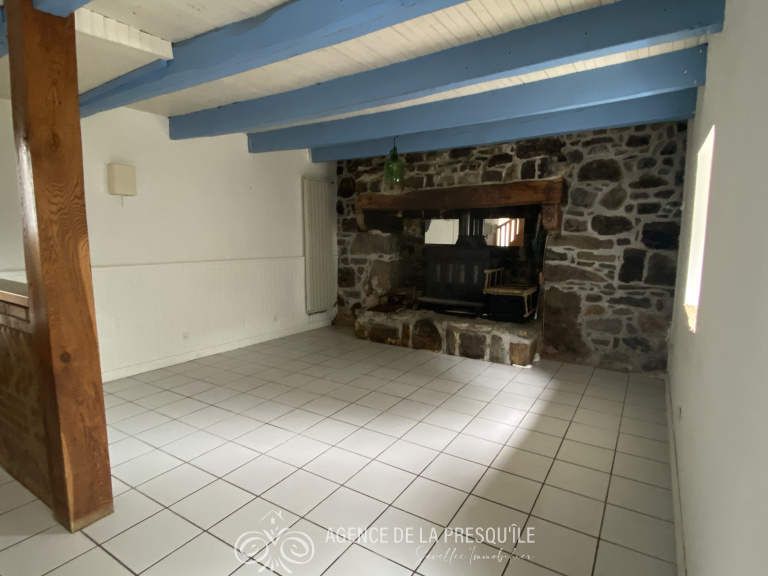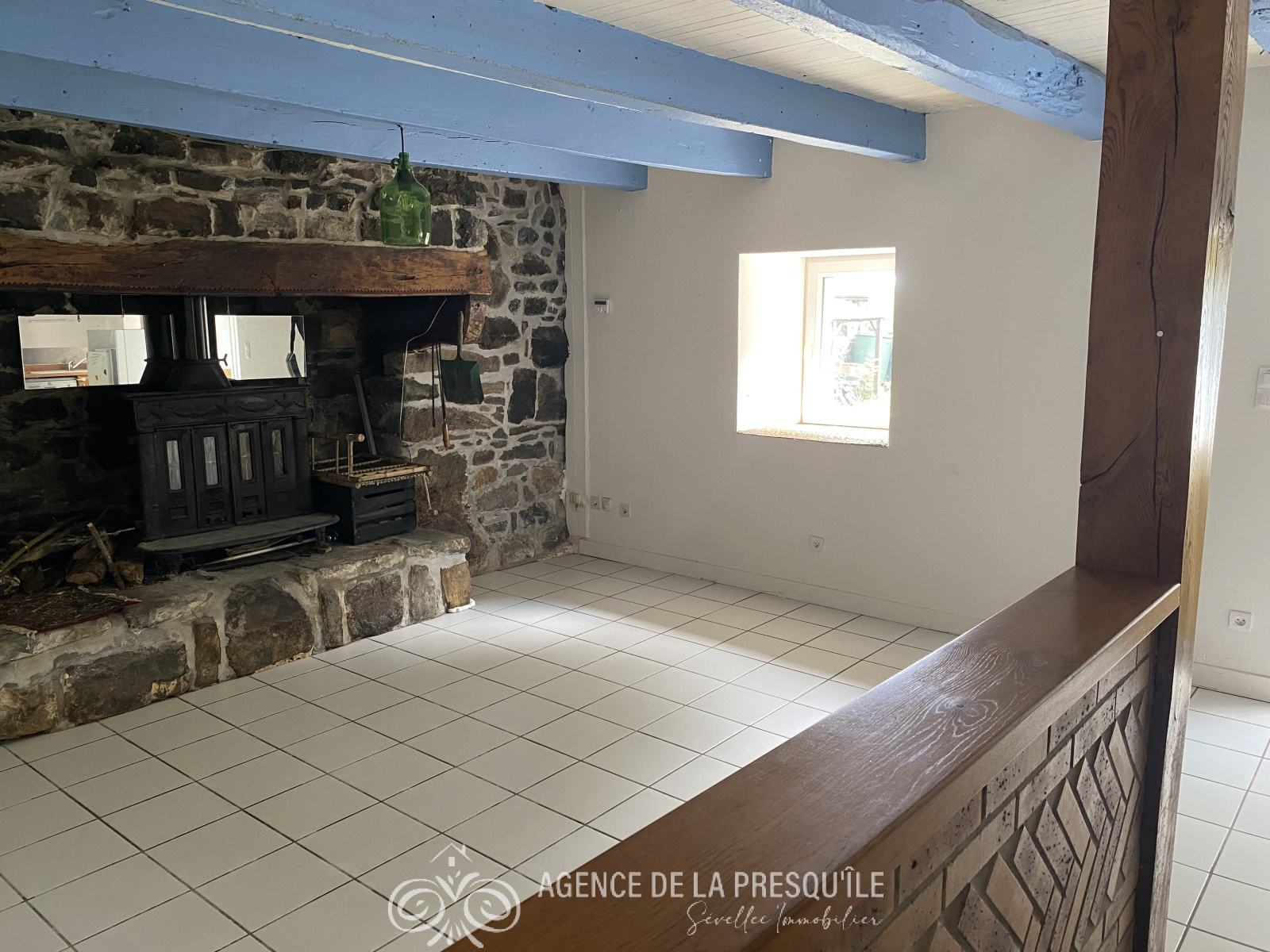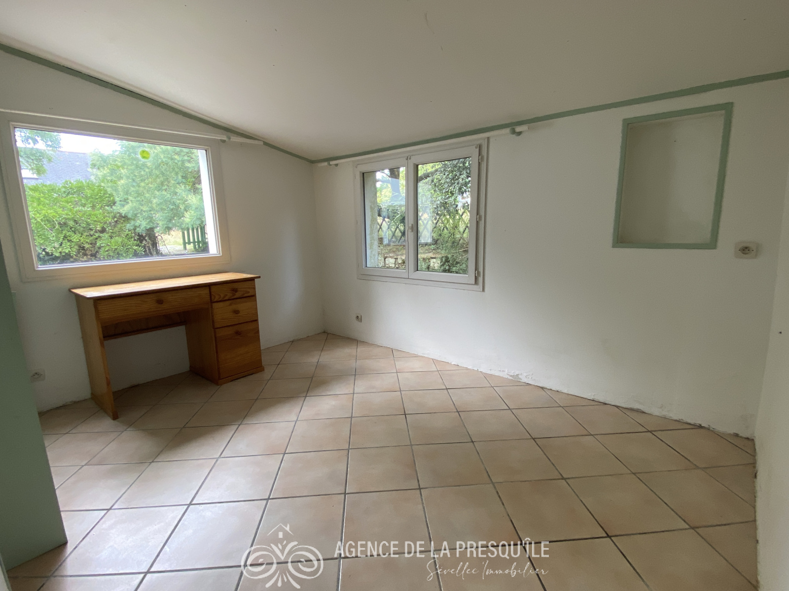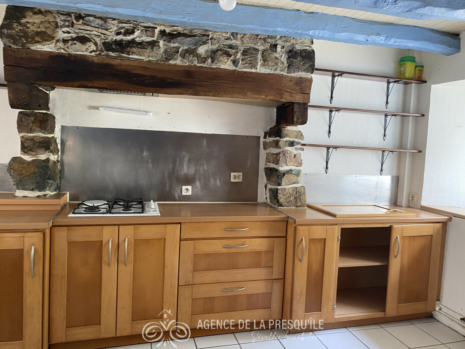 Cet ensemble traditionnel situé à l'entrée de la Presqu'île dans une campagne verdoyante profite d'un agréable jardin et d'une belle dépendance en pierre offrant de nombreuses potentialités. La maison d'habitation comprend au rez-de-chaussée: entrée, séjour, cuisine, chambre, dégagement, buanderie, et WC; et à l'étage: deux chambres et une salle d'eau. Dépendance non-attenante de 48 m² au sol et à l'étage: pièce au-dessus d'environ 35 m². Jardin agréablement aménagé. Etat des risques disponible à l'agence.