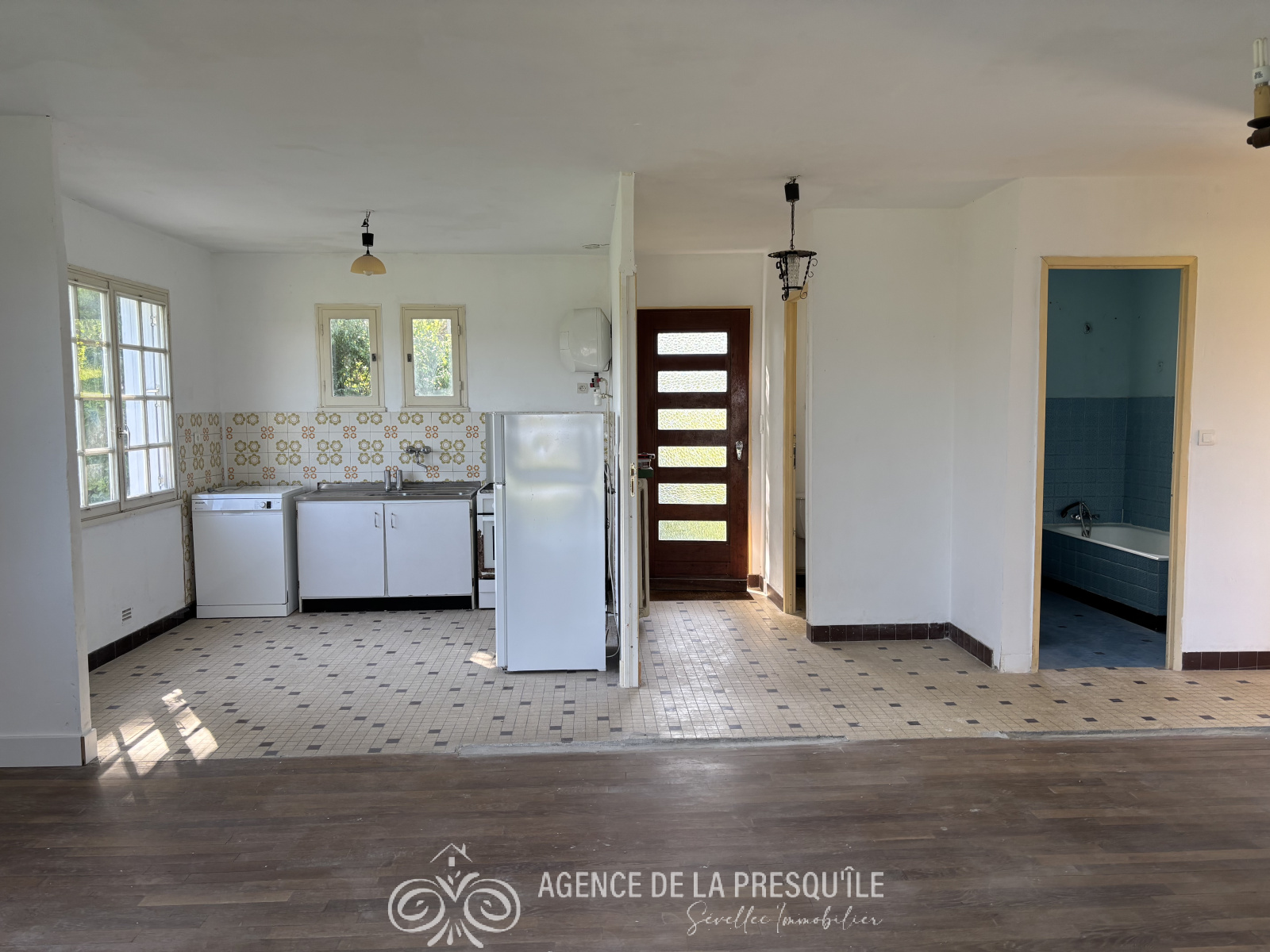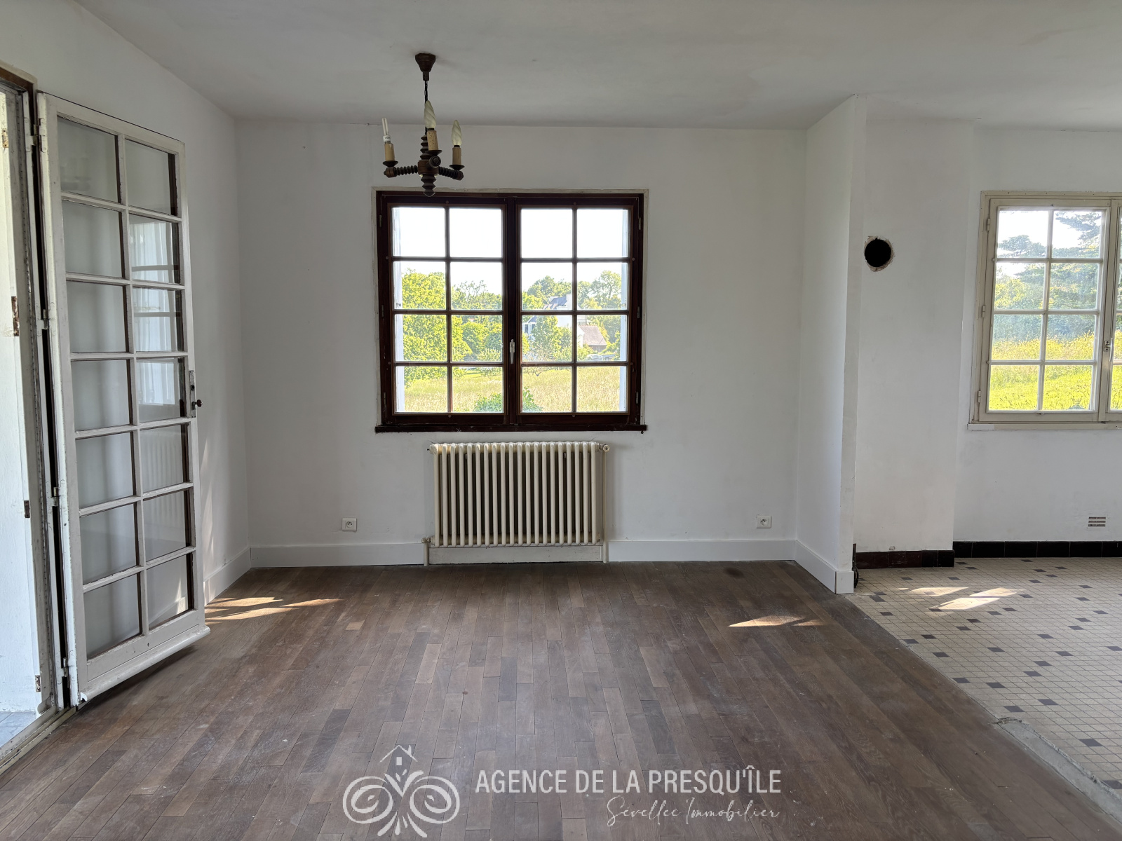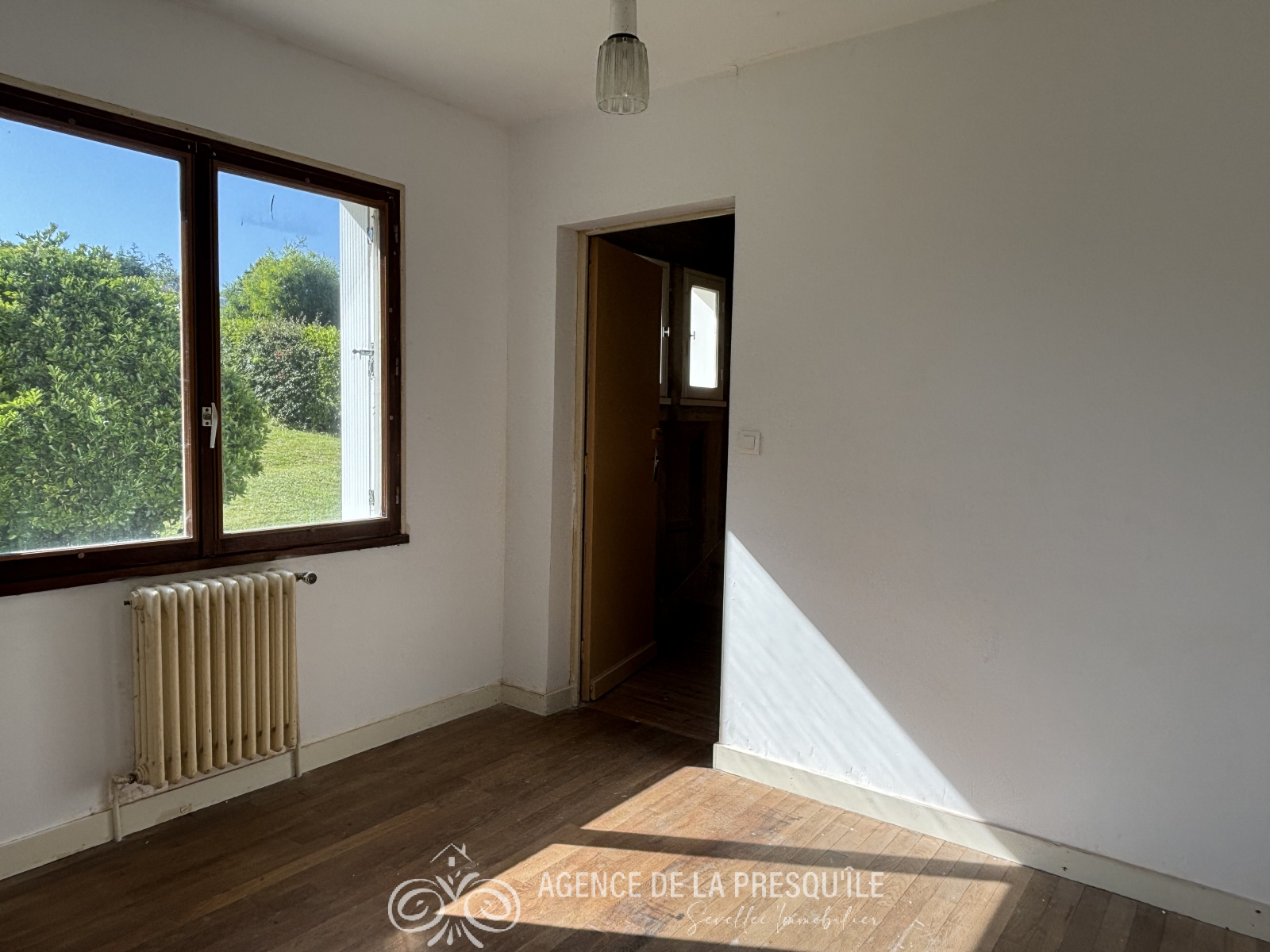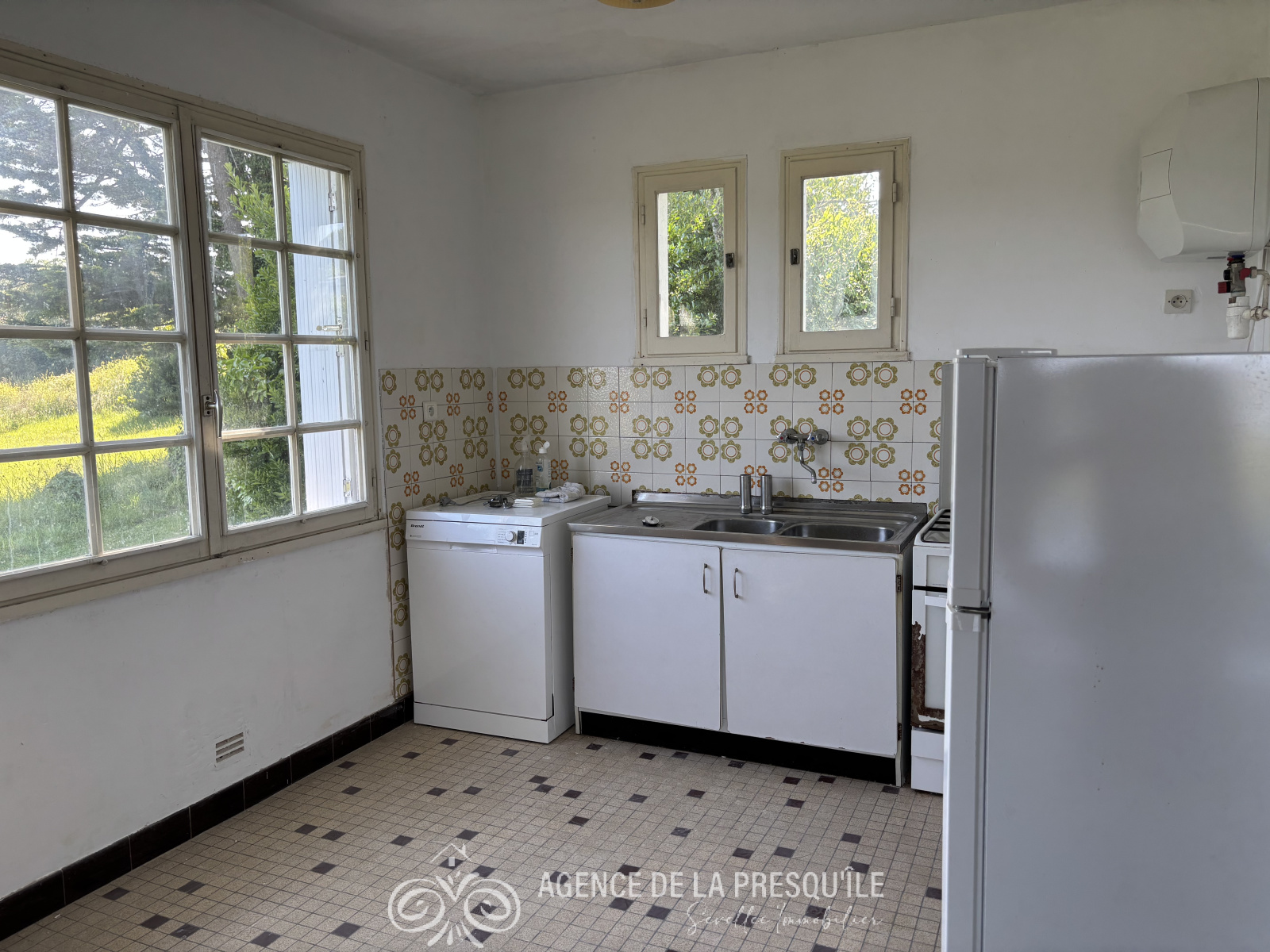 Sous compromis - Située au calme dans un environnement verdoyant, à moins de 1,5 km du bourg de roscanvel et de la mer, cette charmante maison des années 60 profitant d'une belle vue sur mer n'attend que votre créativité pour terminer les travaux en cours. Elle comprend au rez-de-chaussée : entrée, véranda de 14 m², salon, cuisine, dégagement, salle de bains, chambre, bureau et à l'étage : grenier, une chambre en enfilade donnant sur une autre chambre exposée sud. Garage à usage de cellier. Abri. Le tout sur un terrain de 3 303 m² . Pas de DPE car pas de système de chauffage. Etat des risques disponible à l'agence.