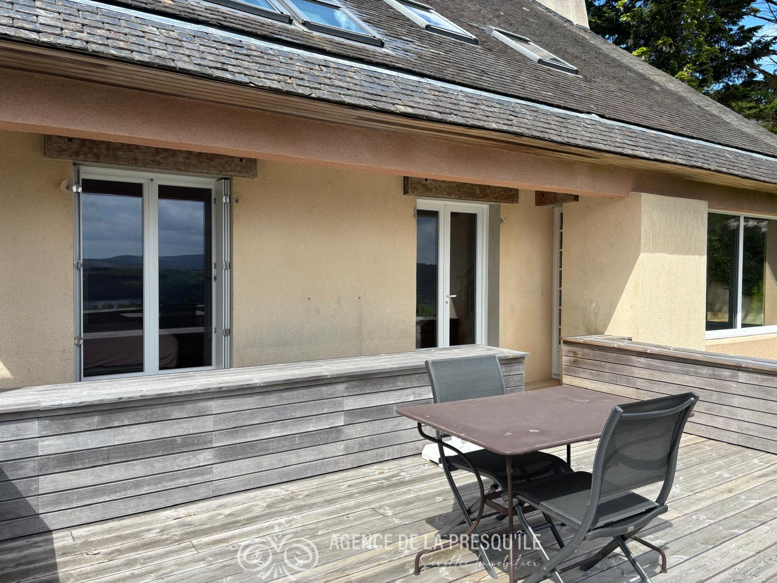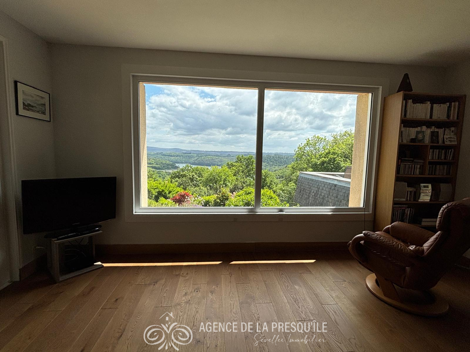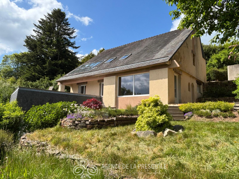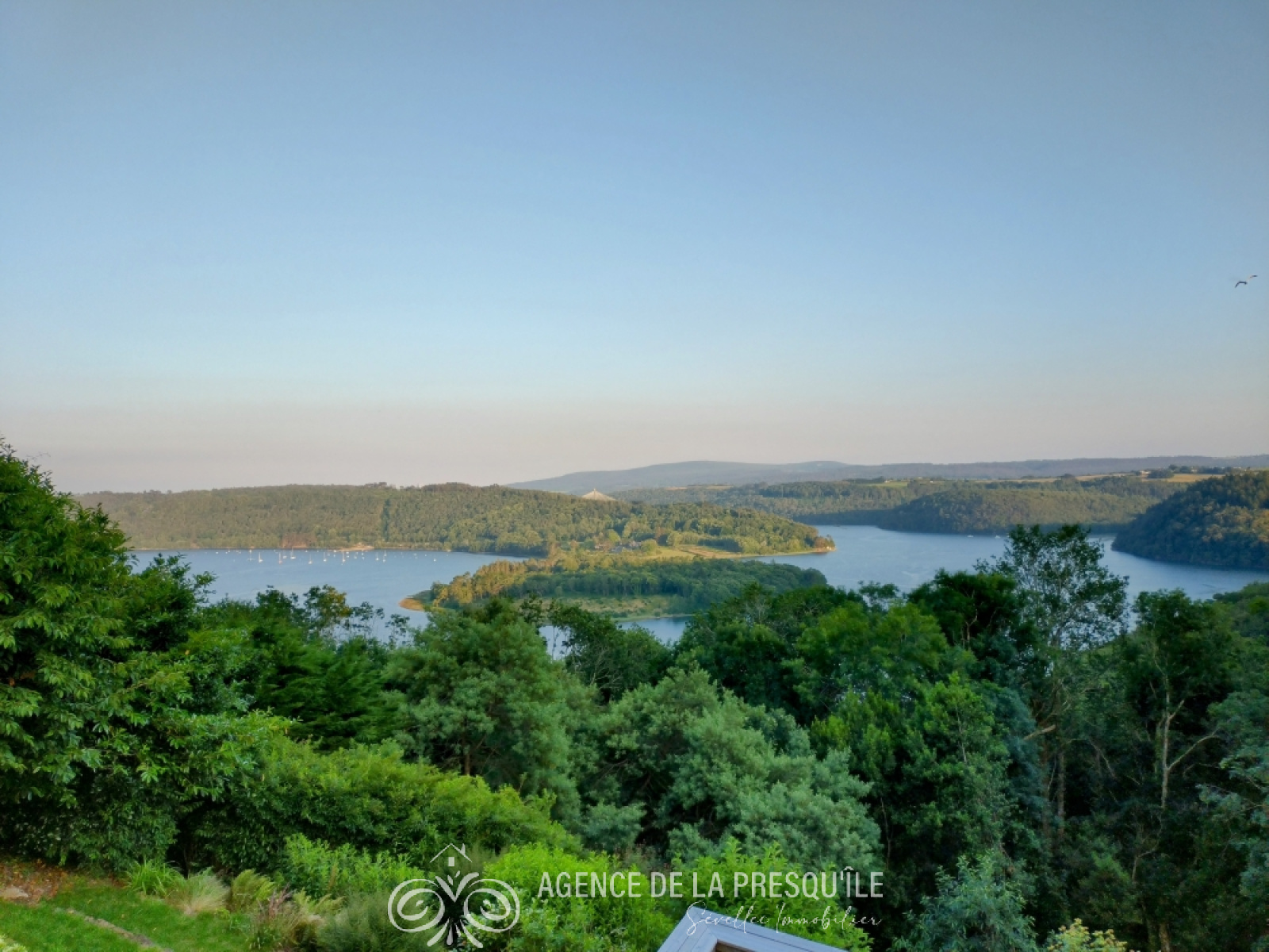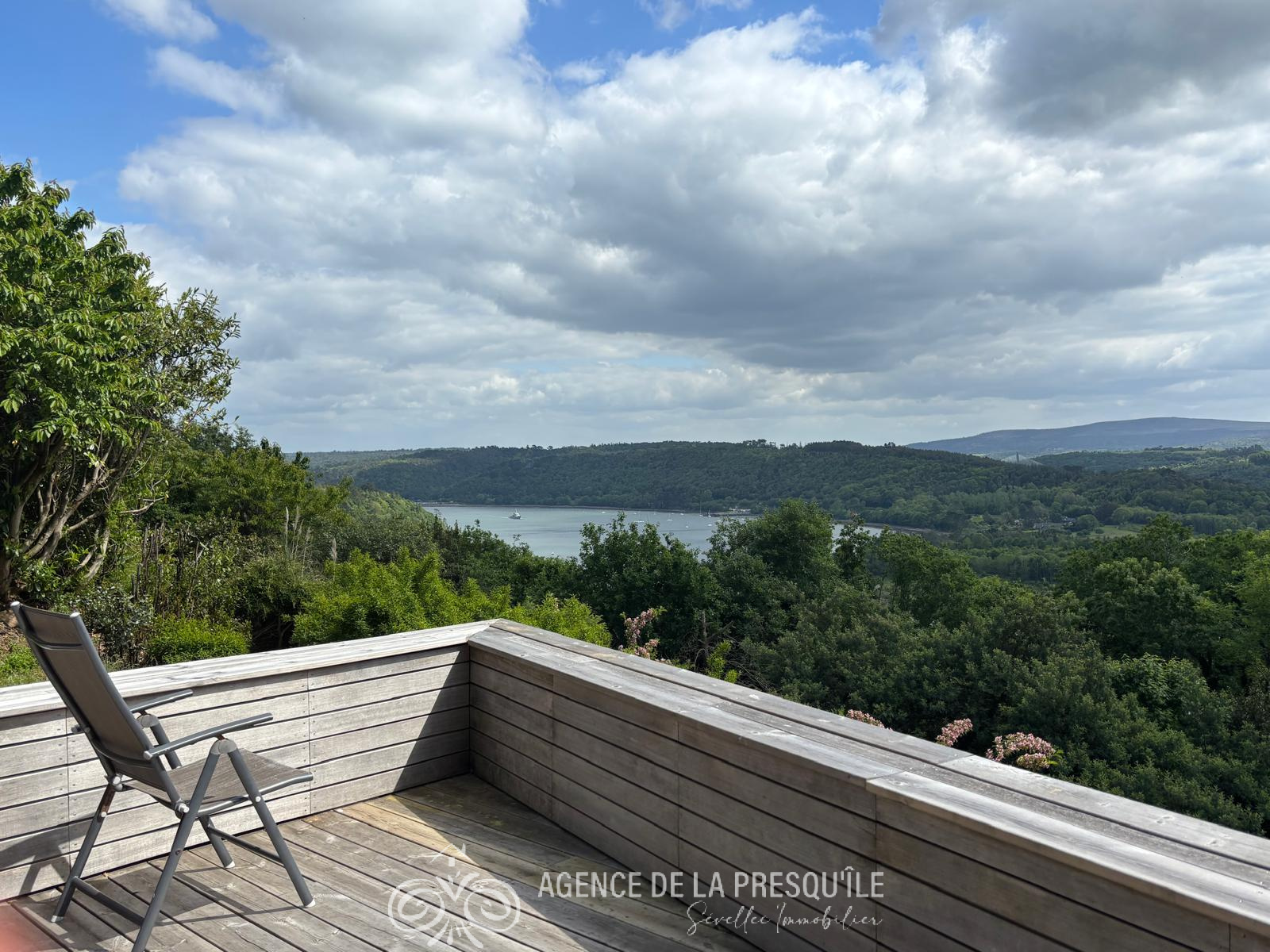 Cette villa d'architecte située au calme et au coeur d'un environnement préservé offre une vue exceptionnelle sur l'Aulne maritime. Edifiée dans les années 70 avec des matériaux de qualité puis remise au goût du jour, cette propiété d'exception propose une atmosphère chaleureuse et une agréable intéraction avec la nature environnante. Elle comprend : entrée, dégagement donnant sur une chambre et une grande pièce, salle de bains et WC séparé. Au niveau inférieur se trouve une belle pièce de séjour avec cheminée offrant une perspective sur l'estuaire et profitant d'un accès donnant sur une terrasse, cuisine aménagée, suite parentale donnant également sur l'extérieur avec salle de bains attenante, buanderie et WC. Atelier en rez-de-jardin avec accès indépendant. Garage non attenant. Jardin arboré donnant sur un sentier permettant d'accèder à la grève. Etat des risques disponilbe à l'agence.