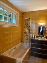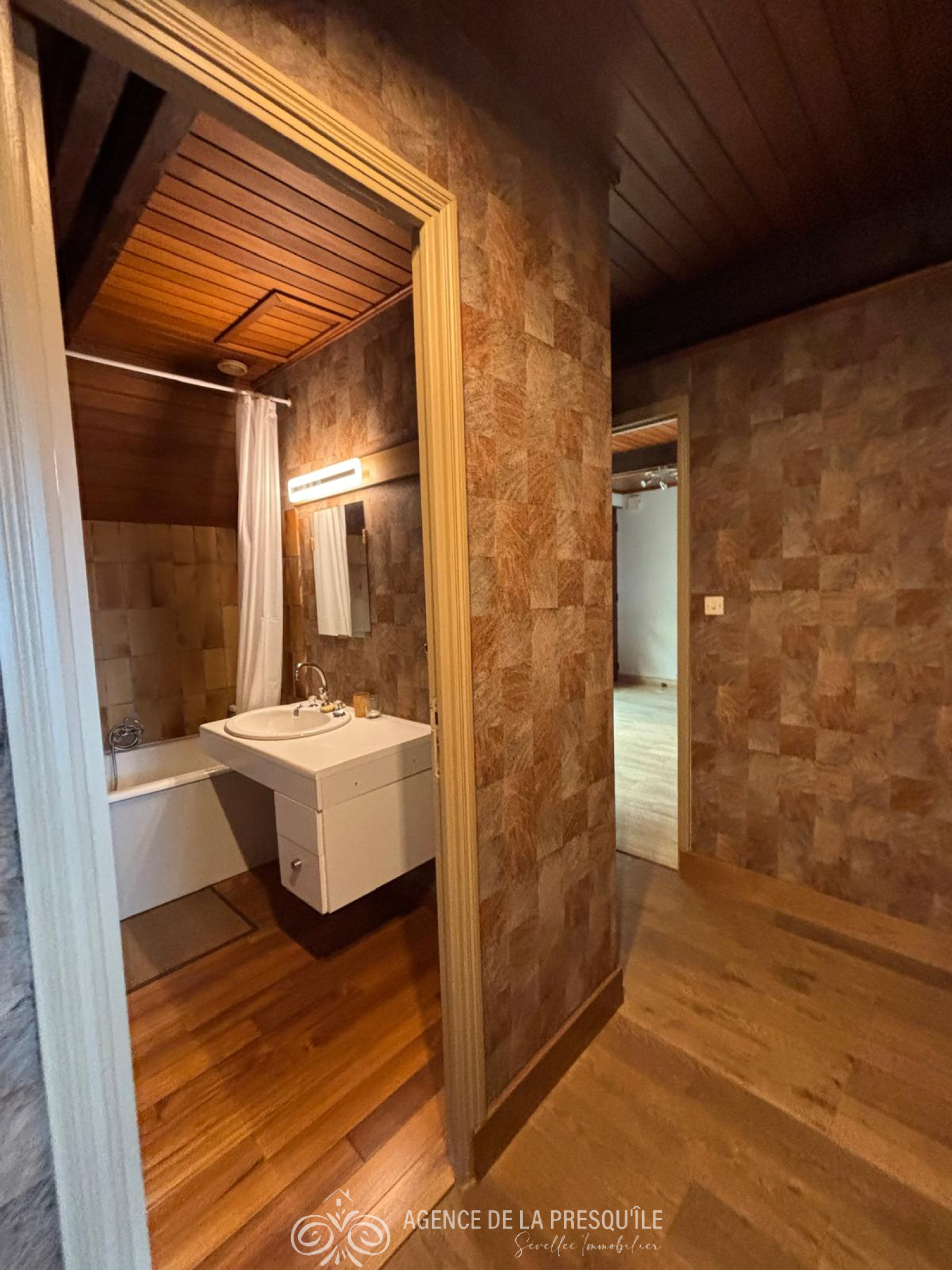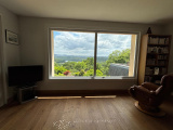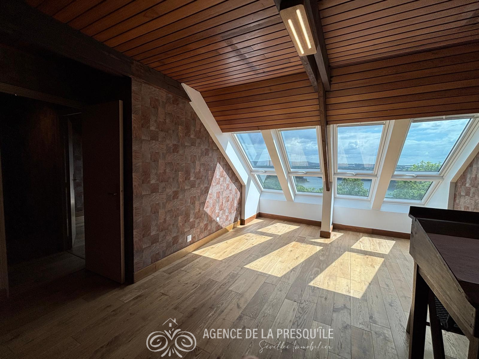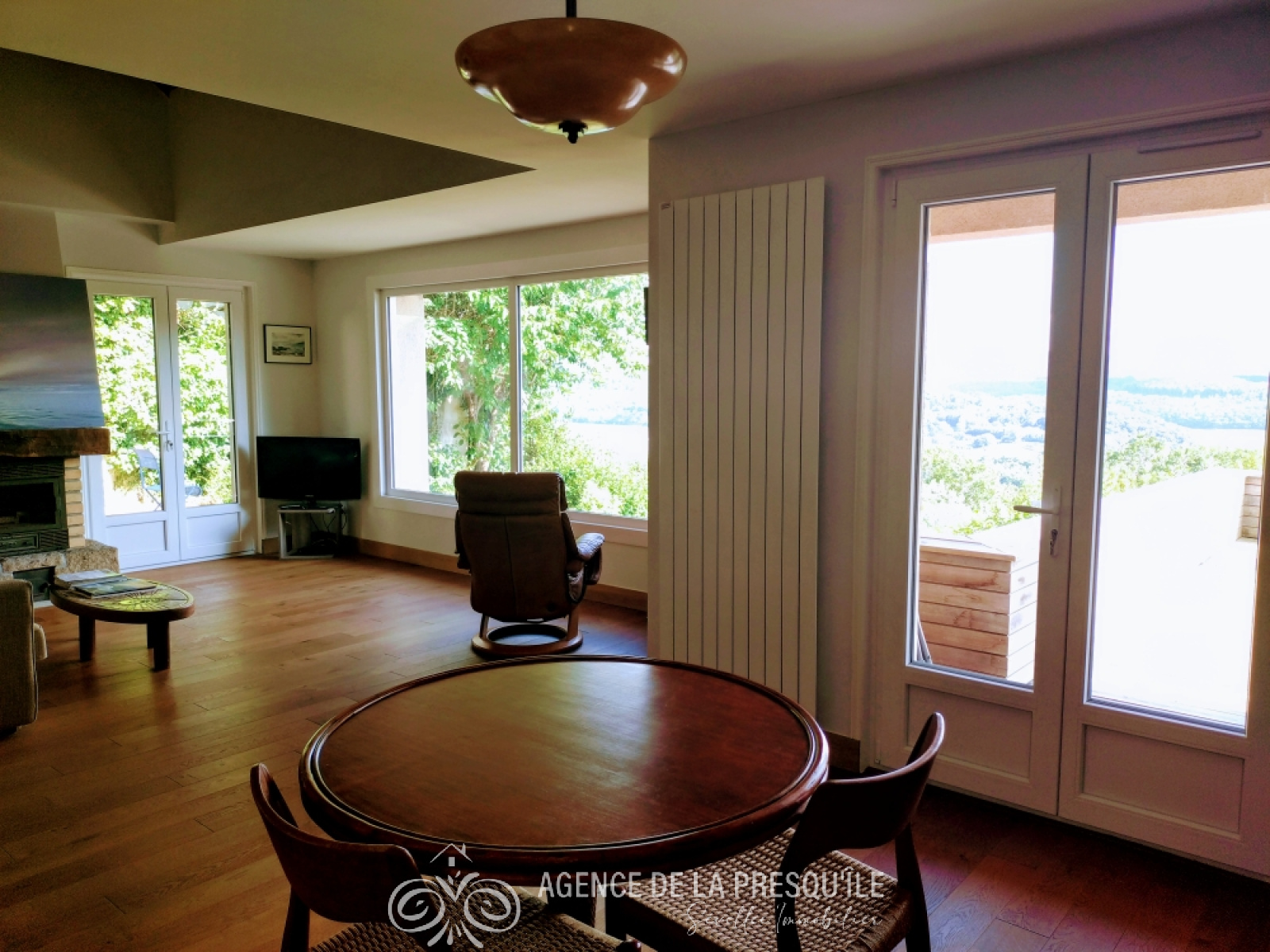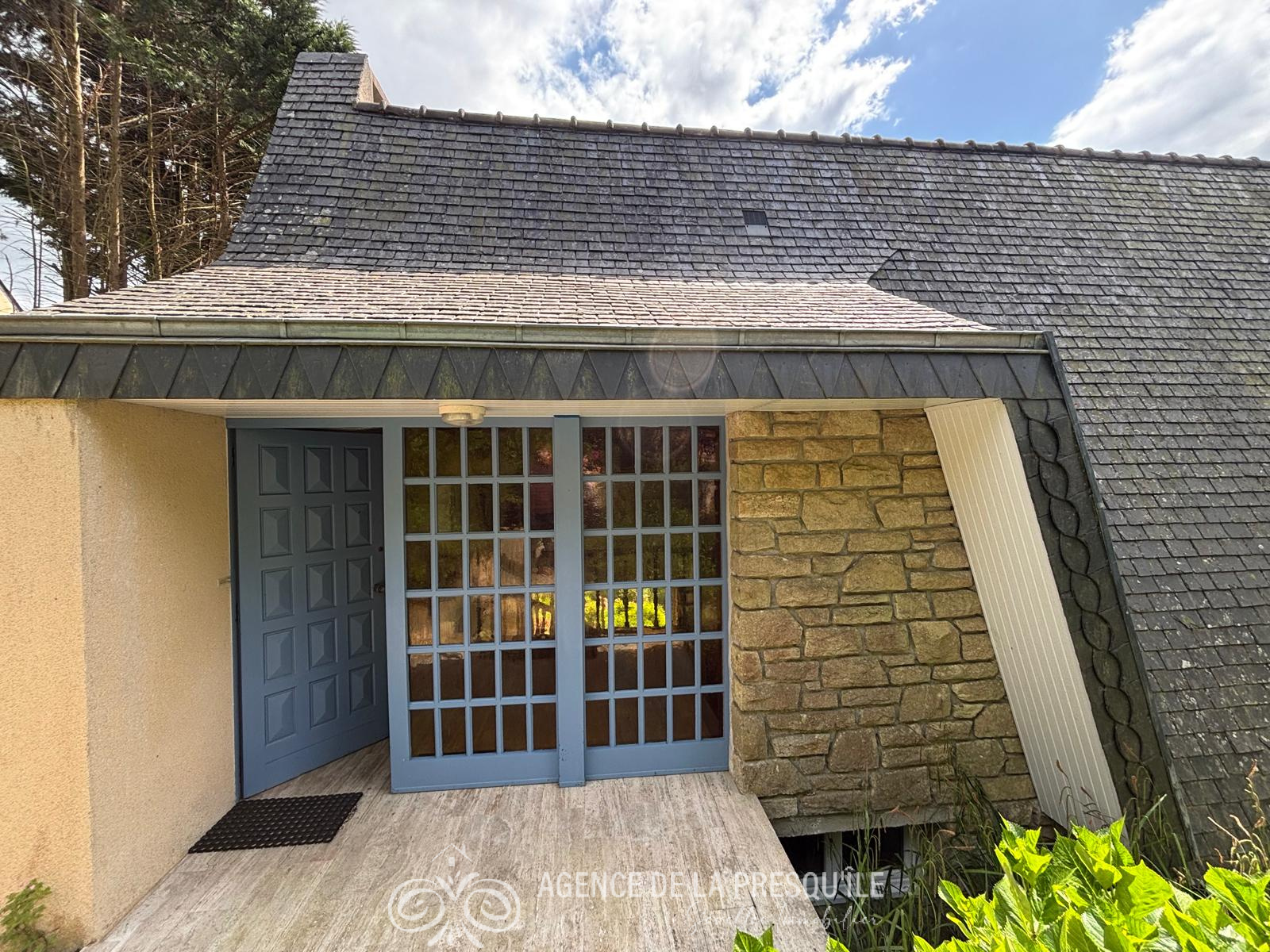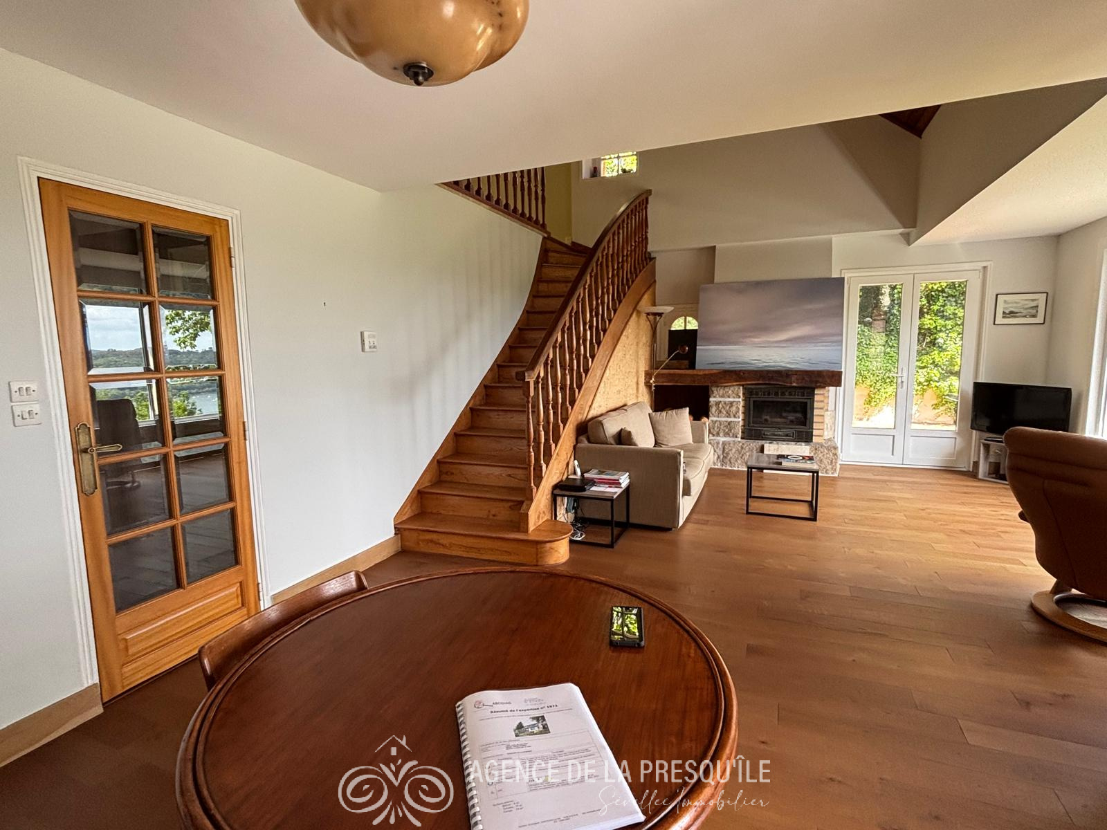 Cette villa d'architecte située au calme et au coeur d'un environnement préservé offre une vue exceptionnelle sur l'Aulne maritime. Edifiée dans les années 70 avec des matériaux de qualité puis remise au goût du jour, cette propiété d'exception propose une atmosphère chaleureuse et une agréable intéraction avec la nature environnante. Elle comprend : entrée, dégagement donnant sur une chambre et une grande pièce, salle de bains et WC séparé. Au niveau inférieur se trouve une belle pièce de séjour avec cheminée offrant une perspective sur l'estuaire et profitant d'un accès donnant sur une terrasse, cuisine aménagée, suite parentale donnant également sur l'extérieur avec salle de bains attenante, buanderie et WC. Atelier en rez-de-jardin avec accès indépendant. Garage non attenant. Jardin arboré donnant sur un sentier permettant d'accèder à la grève. Etat des risques disponilbe à l'agence.