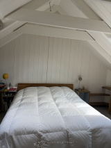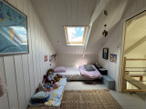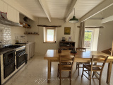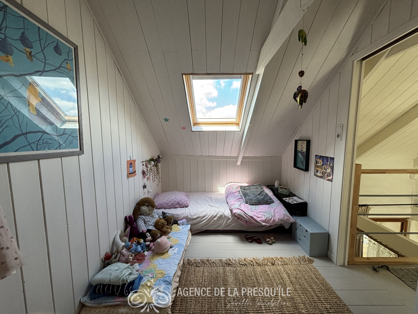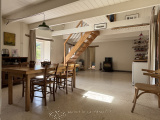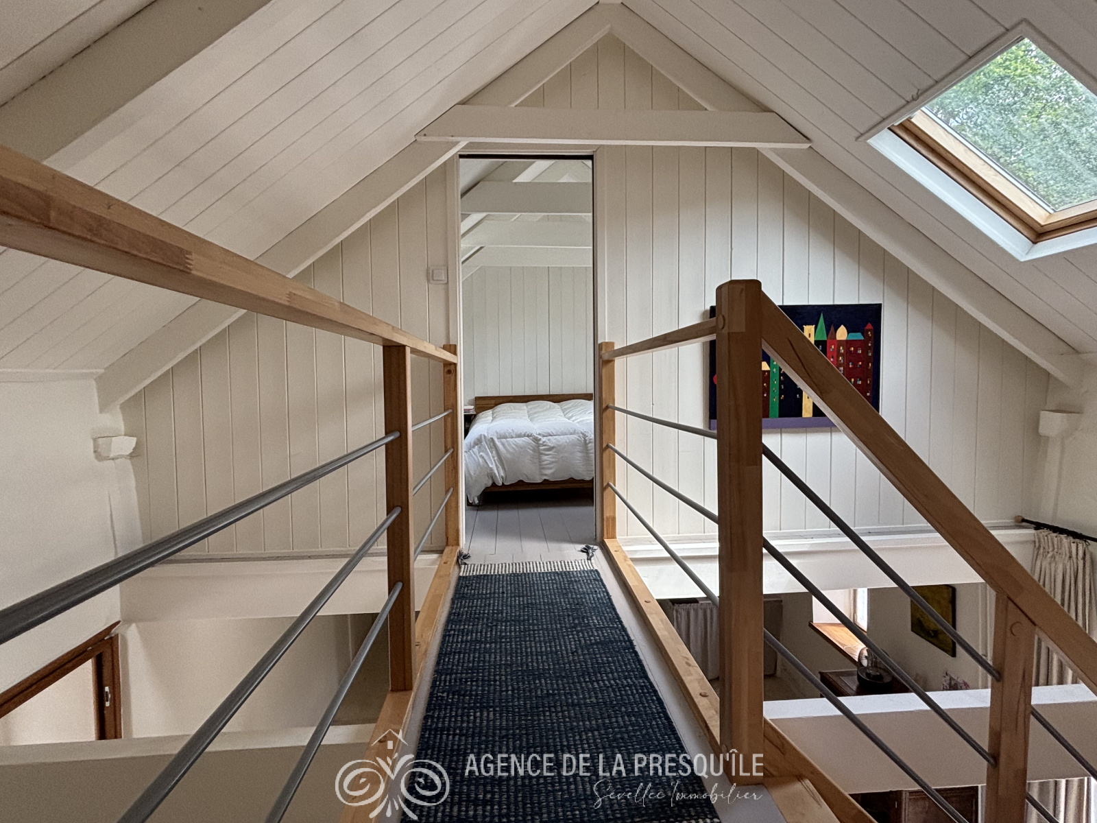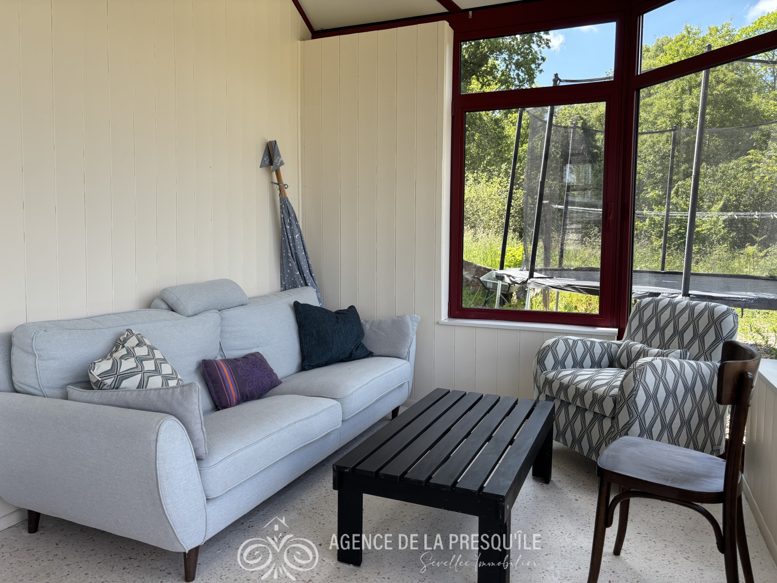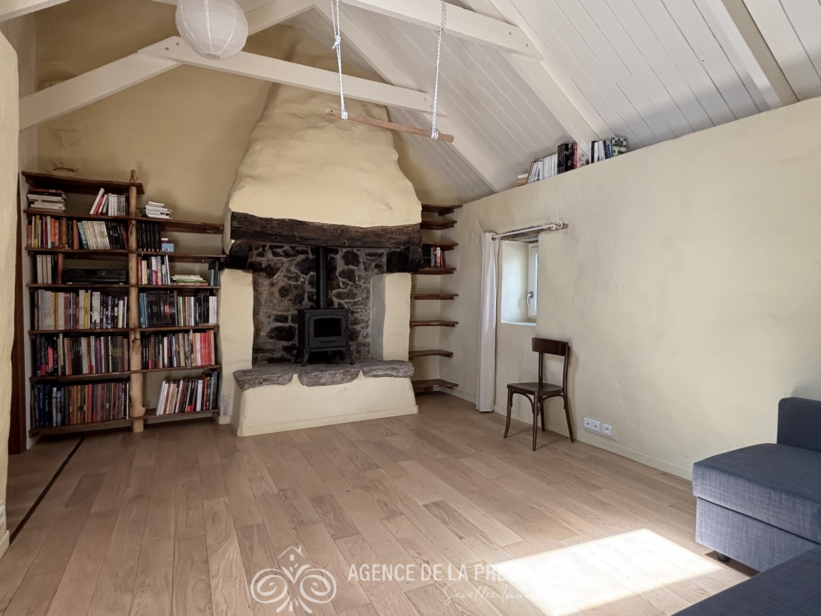 Située à l'entrée de la Presqu'île, dans un cadre verdoyant et sans vis-à-vis, cette propriété rénovée avec goût, profite de beaux volumes et d'un terrain attenant avec hangar de plus d'un hectare ainsi que des parcelles boisées et agricoles situées à proximité immédiate de plus de 6 hectares. La maison d'habitation comprend au rez-de-chaussée : hall d'entrée, salon avec poêle à bois, bureau attenant, grande cuisine aménagée et équipée donnant sur véranda, salle d'eau et WC. L'étage est composé de deux chambres situées au-dessus de la partie principale de la maison et d'une troisième chambre indépendante située à l'est de la maison. Grand hangar avec chaudière bois et préau. Jardin potager avec serre en verre. Le tout sur 71 896 m2.