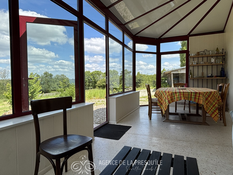 À l’entrée de la Presqu’île de Crozon, dans un environnement verdoyant et sans vis-à-vis, découvrez cette charmante propriété entièrement rénovée avec goût, offrant de beaux volumes et un cadre de vie privilégié. La maison principale se compose, au rez-de-chaussée, d’un hall d’entrée accueillant, d’un salon chaleureux agrémenté d’un poêle à bois, d’un bureau attenant idéal pour le télétravail, ainsi que d’une spacieuse cuisine aménagée et équipée ouverte sur une véranda lumineuse. Une salle d’eau et des WC complètent ce niveau. À l’étage, vous trouverez deux chambres confortables au-dessus de la partie principale, ainsi qu’une troisième chambre indépendante, offrant de multiples possibilités (espace invités, location, activité professionnelle…). À l’extérieur, la propriété séduit par ses nombreuses dépendances et son potentiel rare : un grand hangar avec chaudière bois et préau, un jardin potager avec serre en verre, ainsi que plus d’un hectare attenant. Des parcelles boisées et agricoles supplémentaires, situées à proximité immédiate, portent la surface totale à plus de 7 hectares (71 896 m²). Un bien idéal pour les amoureux de nature, les projets agricoles ou équestres, ou encore pour une résidence principale avec activité. État des risques disponible à l’agence.